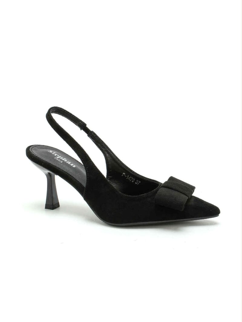 Klasikiniai aukštakulniai iš netikros verstos odos išsiskiria elegantišku siluetu ir subtiliu kaspinėlio akcentu. Puikus pasirinkimas tiek progoms, tiek stilingam kasdieniam įvaizdžiui.