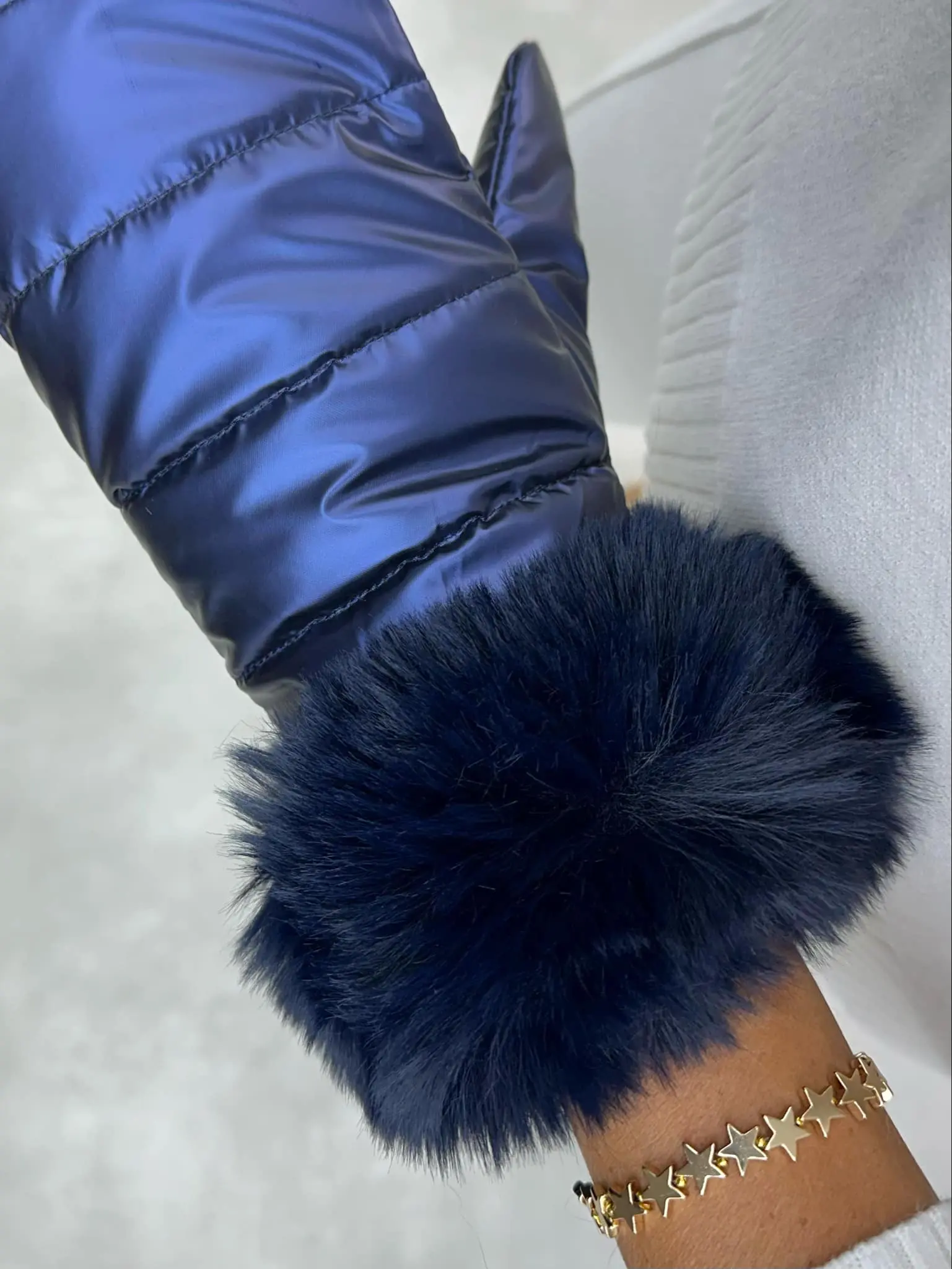 Kumštinės šiltos pirštinės su dirbtiniu kaikliu aplink riešą, tai itin būtinas žieminis aksesuaras, kuris apsaugo šaltuoju sezonu.