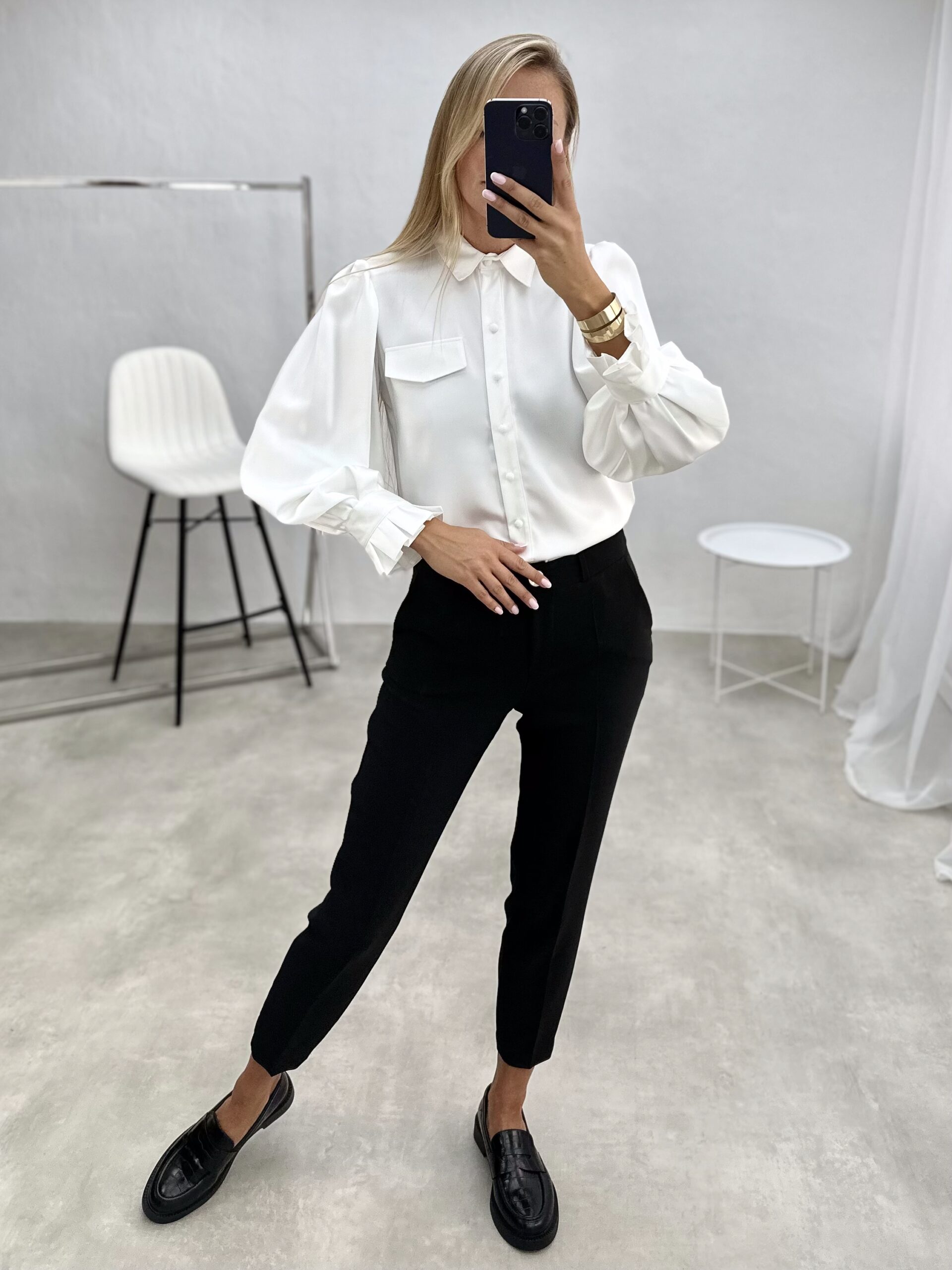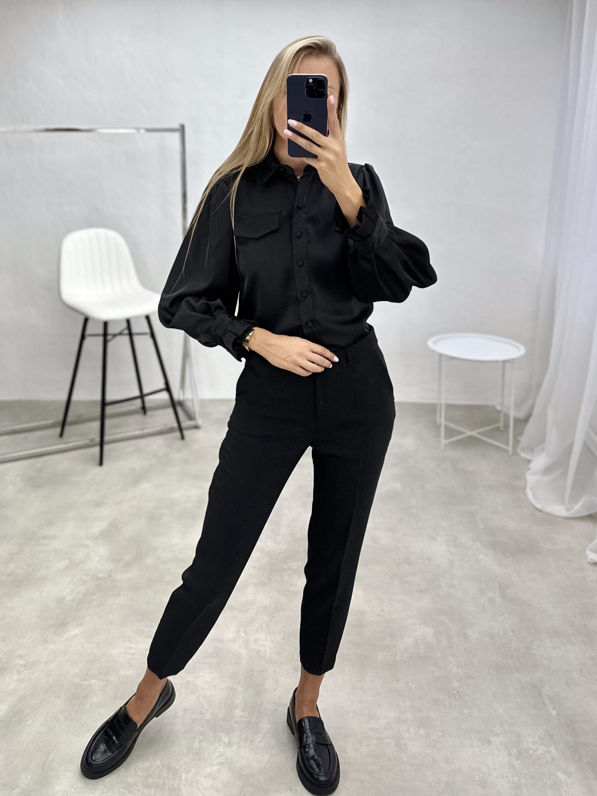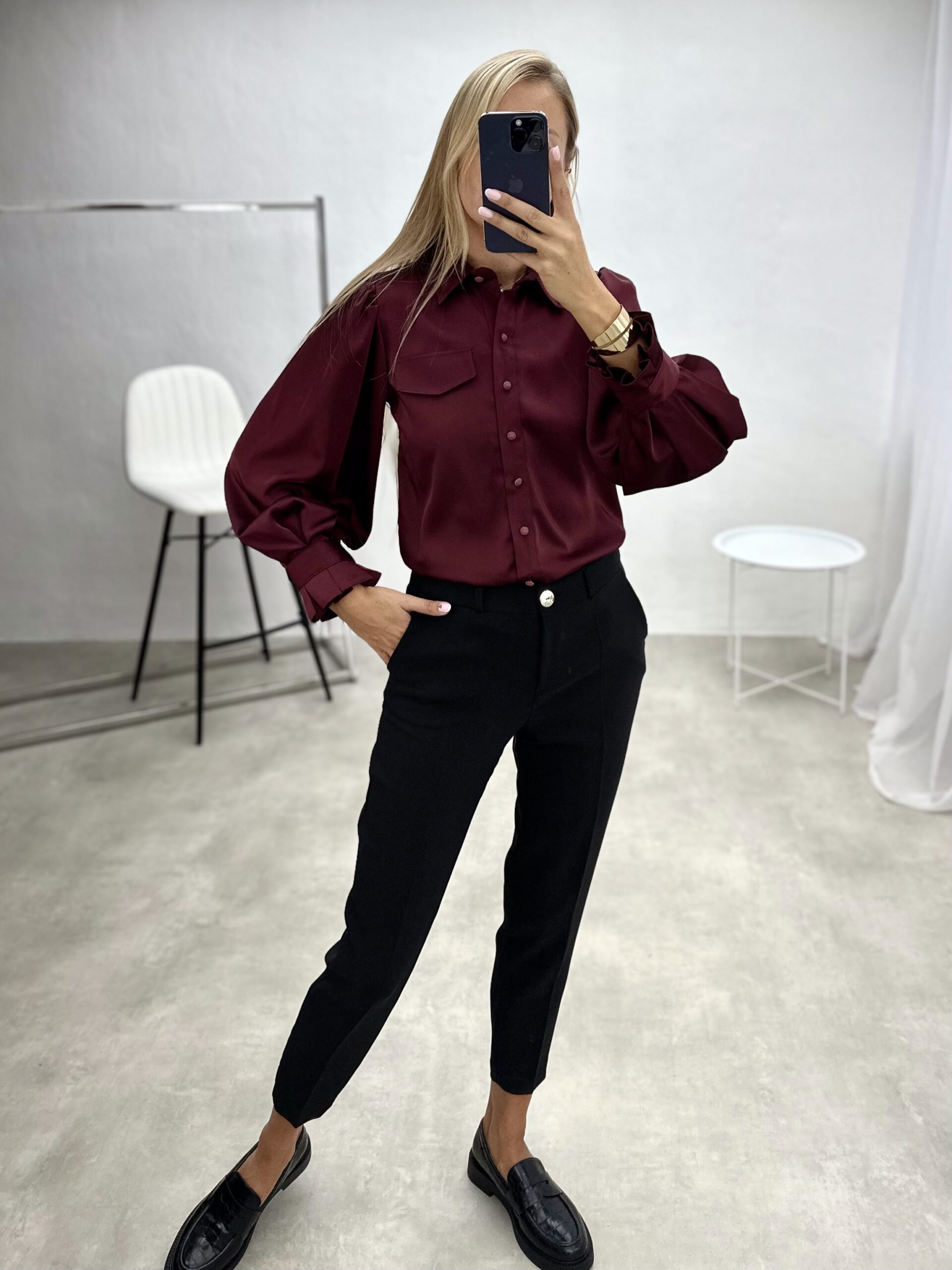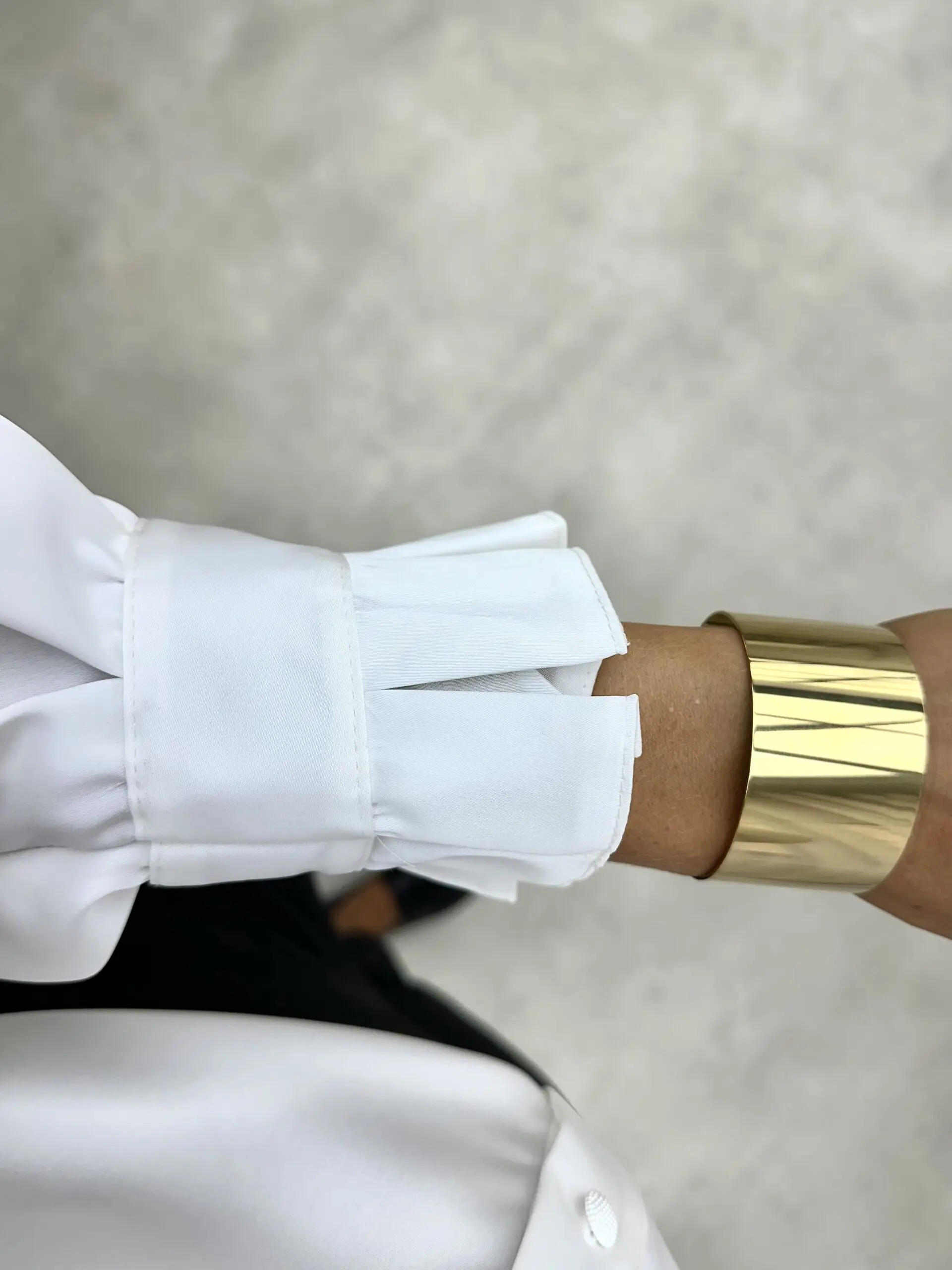 Blizgaus audinio marškiniai – puošnūs ir elegantiški, su subtiliais ripuliukais ant rankogalių. Puikiai tinka tiek kasdieniams, tiek šiek tiek formalesniems deriniams, suteikiant stilingą akcentą.