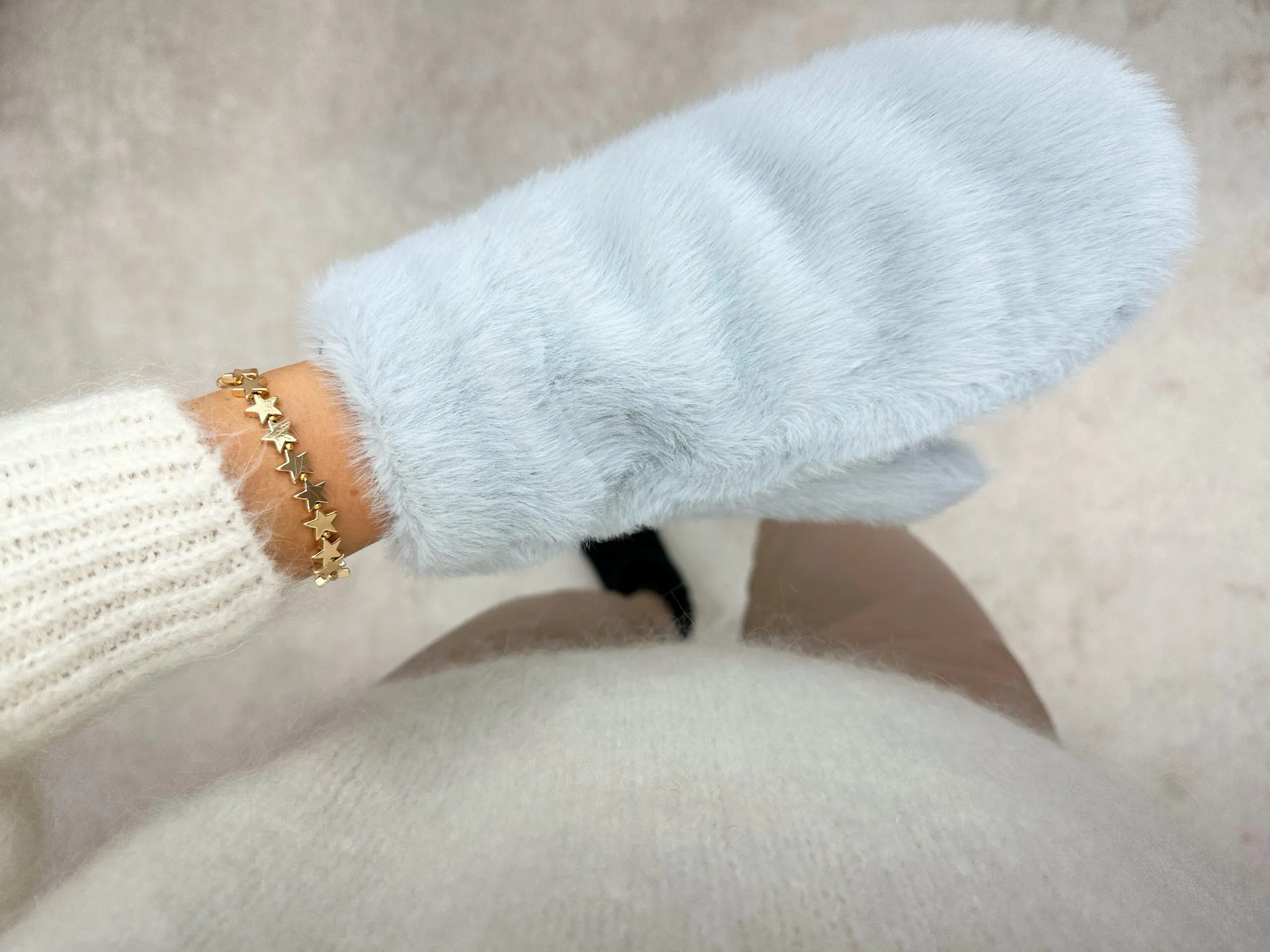 Copy of Kumštinės pirštinės su dirbtiniu kailiu – šviesiai mėlynos