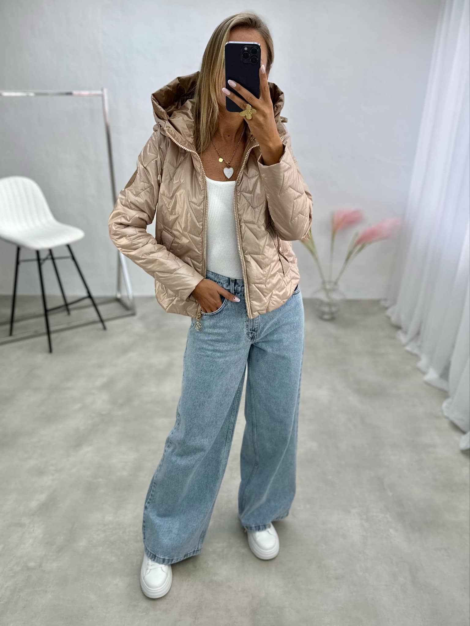 Dygsniuota striukė su gobtuvu