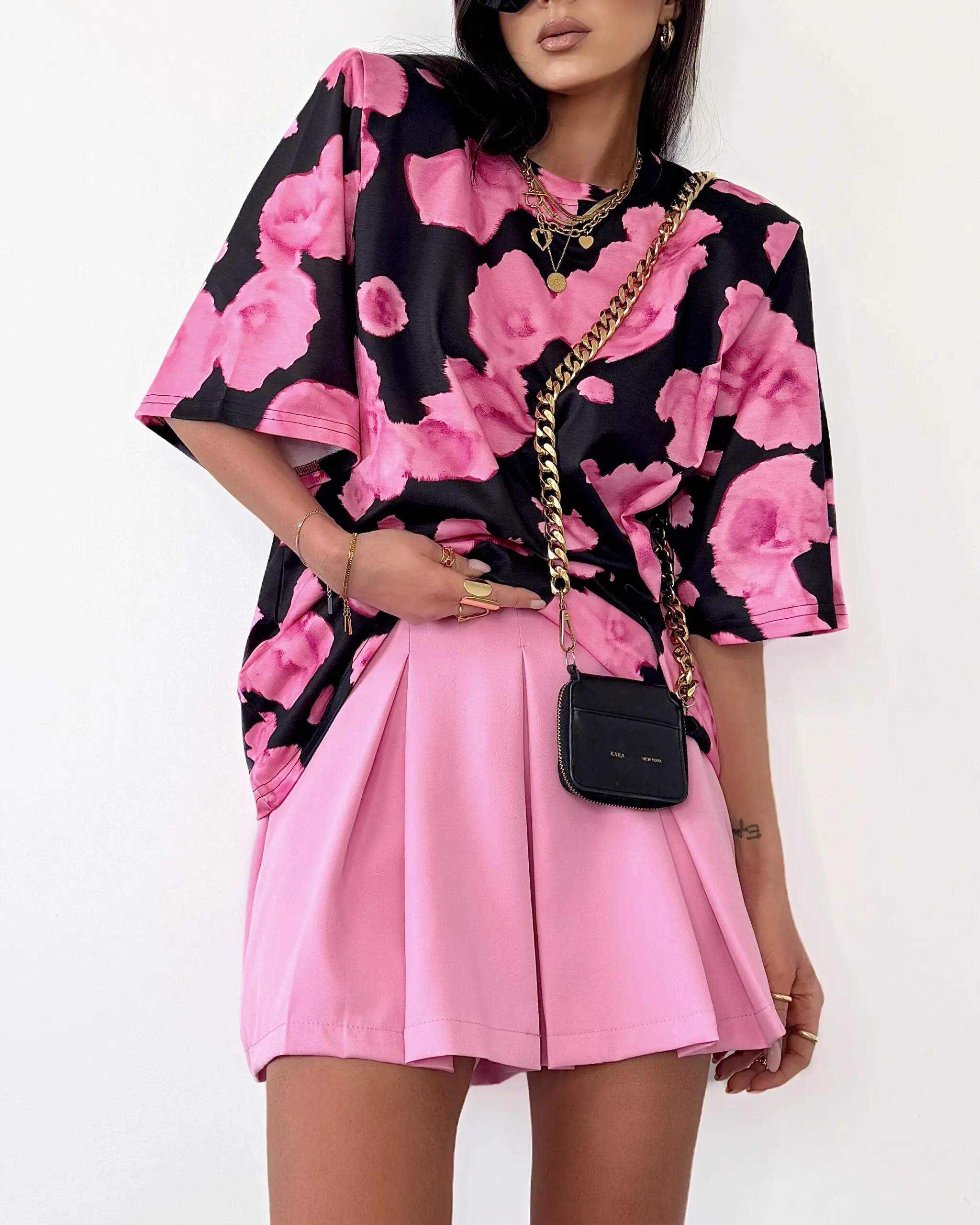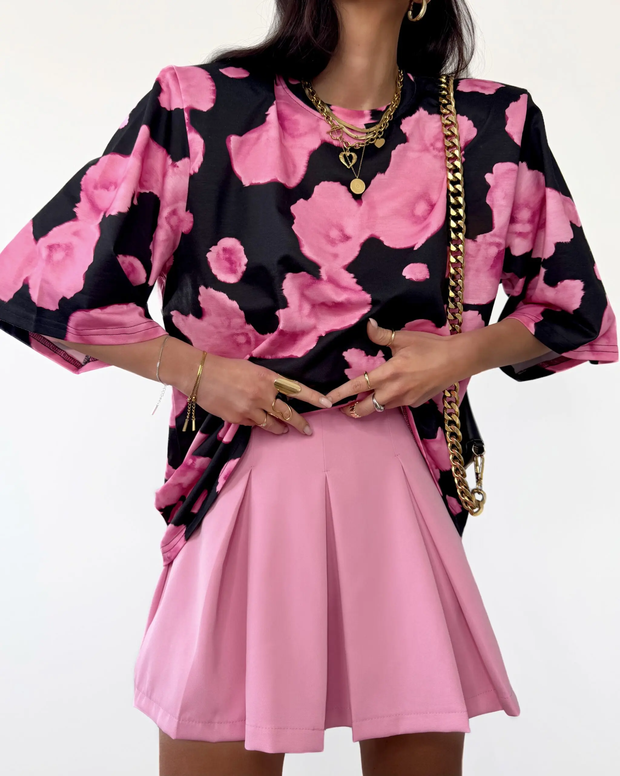 Laisvo silueto palaidinė trumpomis rankovėmis ir pakietintais pečiais – universalus pasirinkimas, puikiai tinkantis tiek kasdienai, tiek stilingam įvaizdžiui kurti.