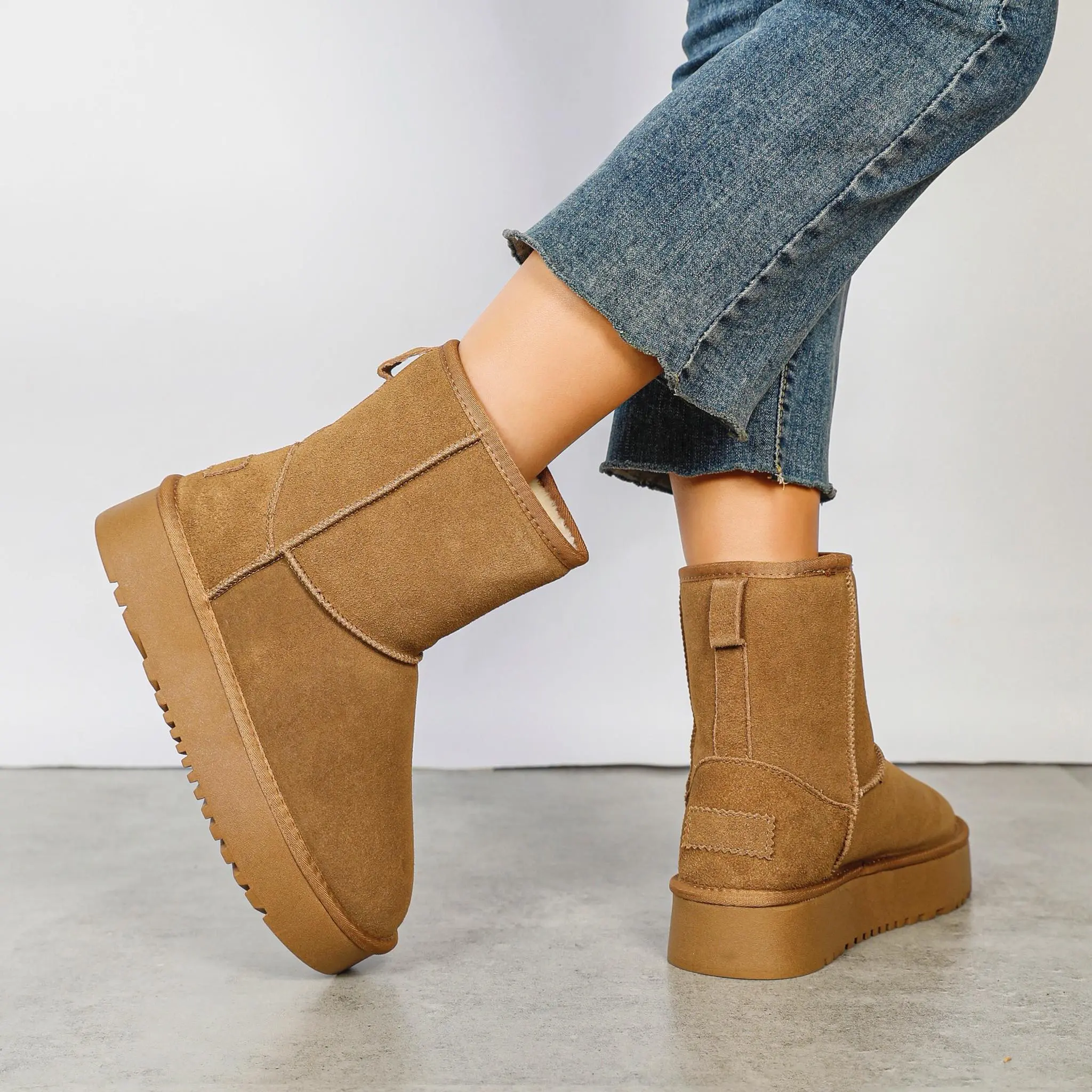 Ilgesnio UGG tipo modelio odiniai batai smėlinės spalvos
