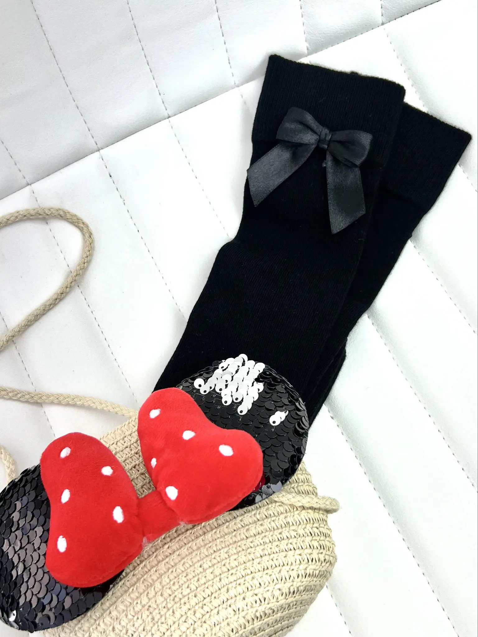 Ilgos kojinės su kaspinu juodos spalvos