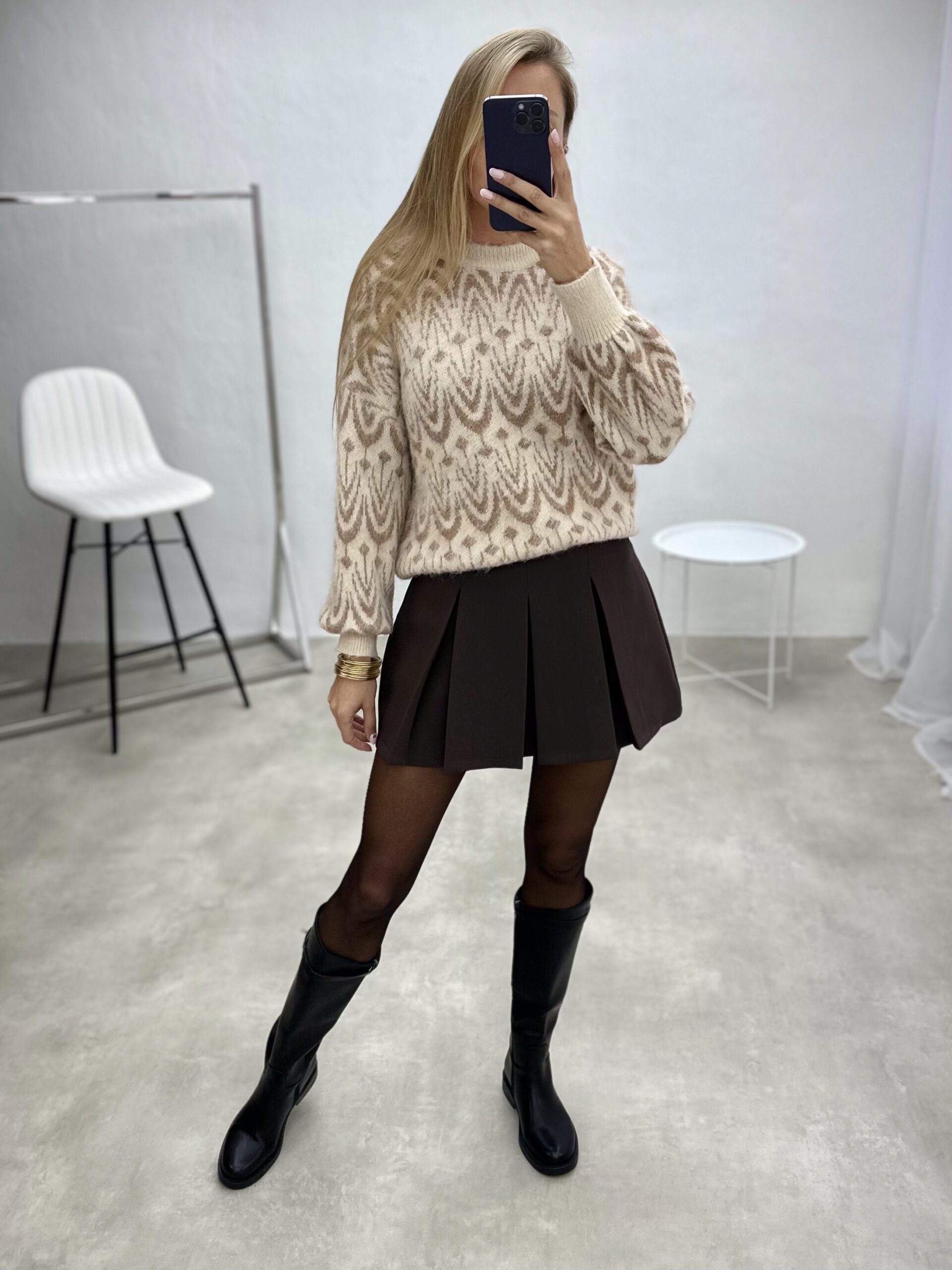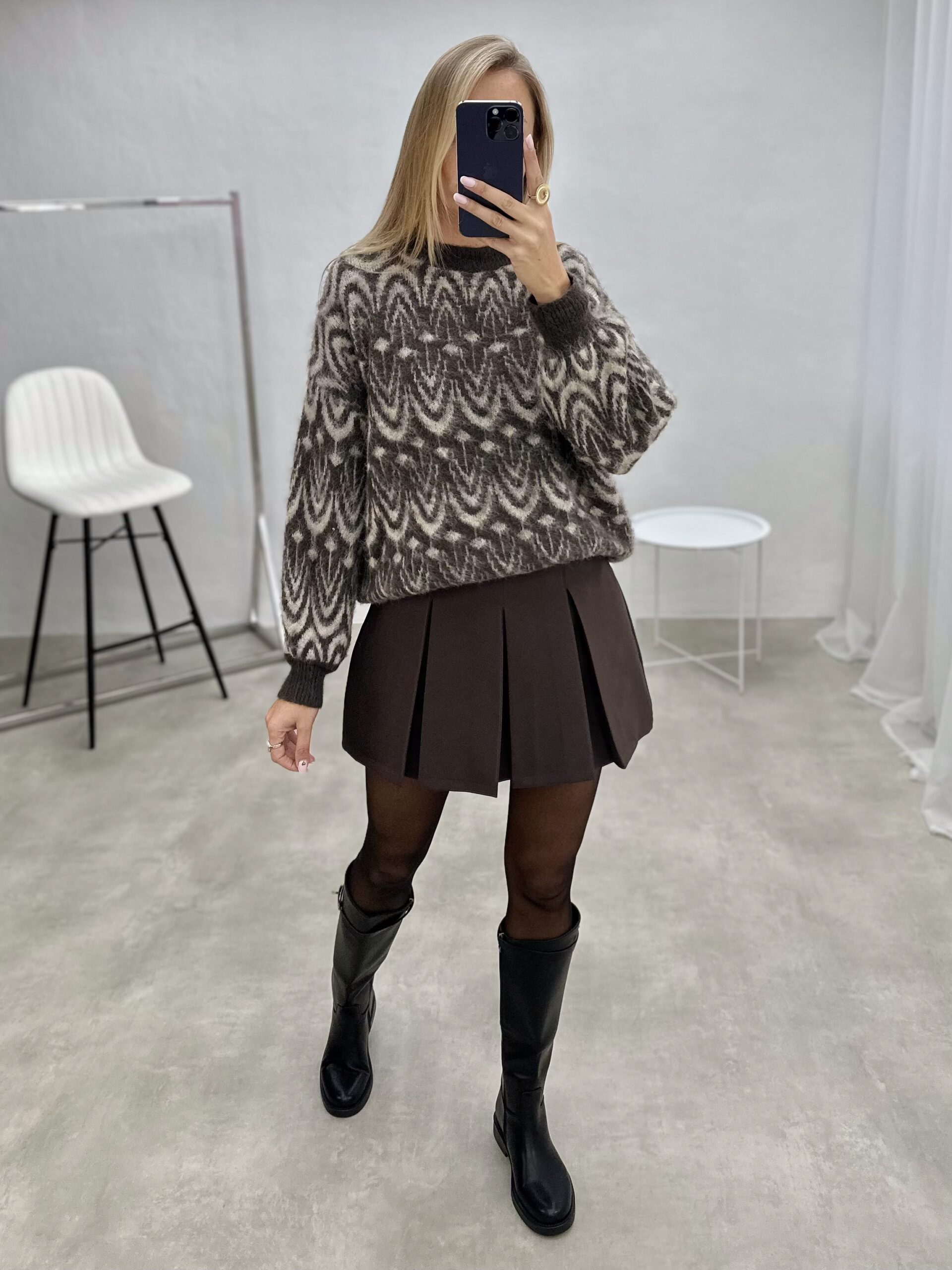 Išskirtinio rašto, jaukus megztinis – stilingas ir komfortiškas pasirinkimas kasdienai. Minkštas, šiltas ir suteikiantis originalumo tavo įvaizdžiui.