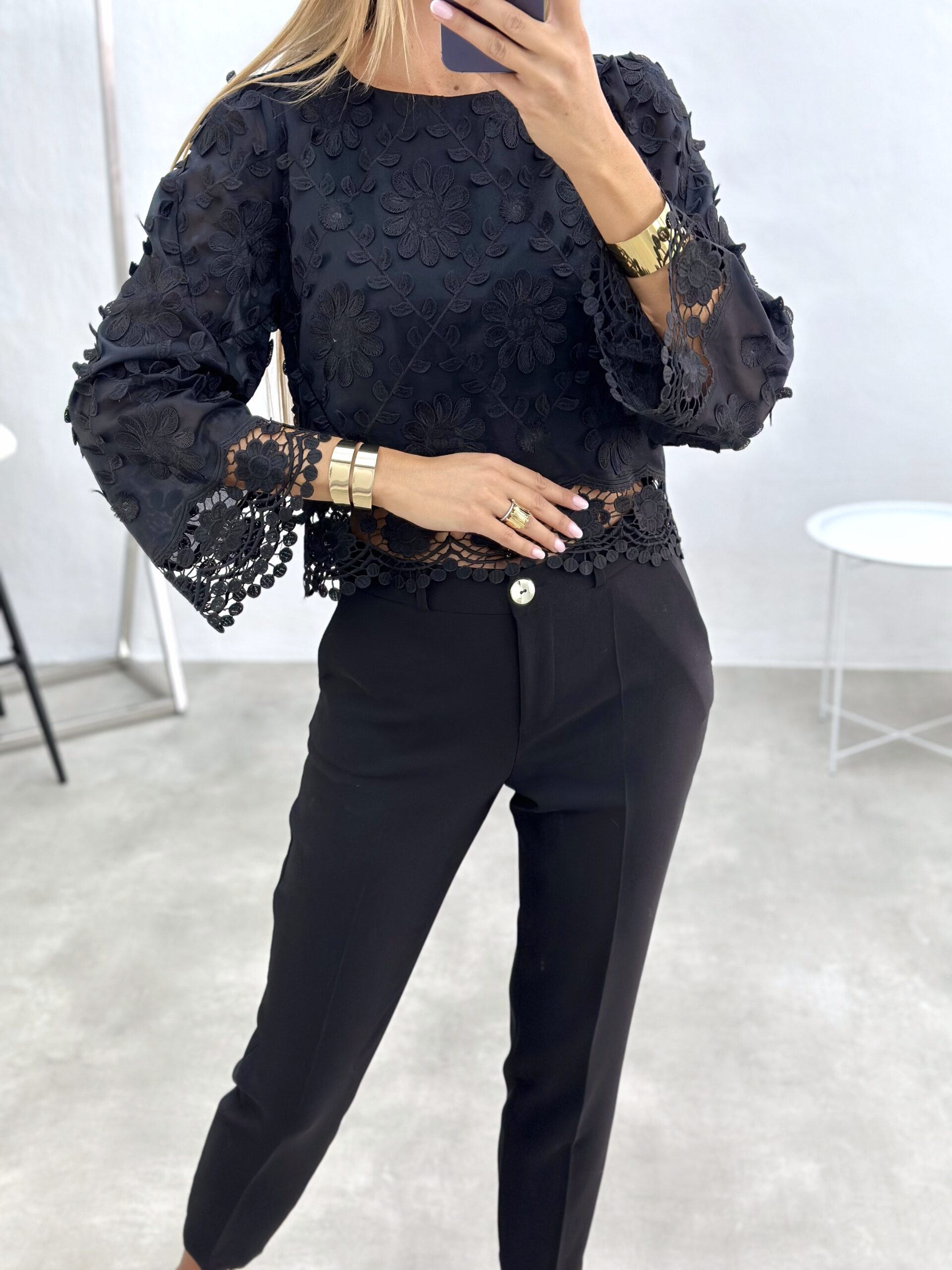 Klasikinė palaidinė, dekoruota subtiliais siuvinėjimais, suteikia išskirtinio žavesio. Elegantiškas dizainas puikiai tinka tiek kasdienai, tiek ypatingoms progoms.