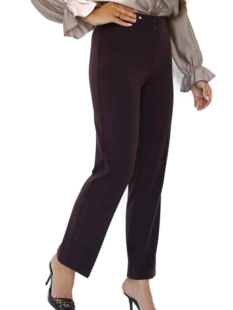 Klasikinės tiesaus kirpimo kelnės su dviem sagomis ant juosmens suteikia tvarkingą ir elegantišką akcentą. Švarus kirpimas pabrėžia siluetą ir leidžia lengvai kurti tiek kasdienius, tiek oficialesnius derinius.
