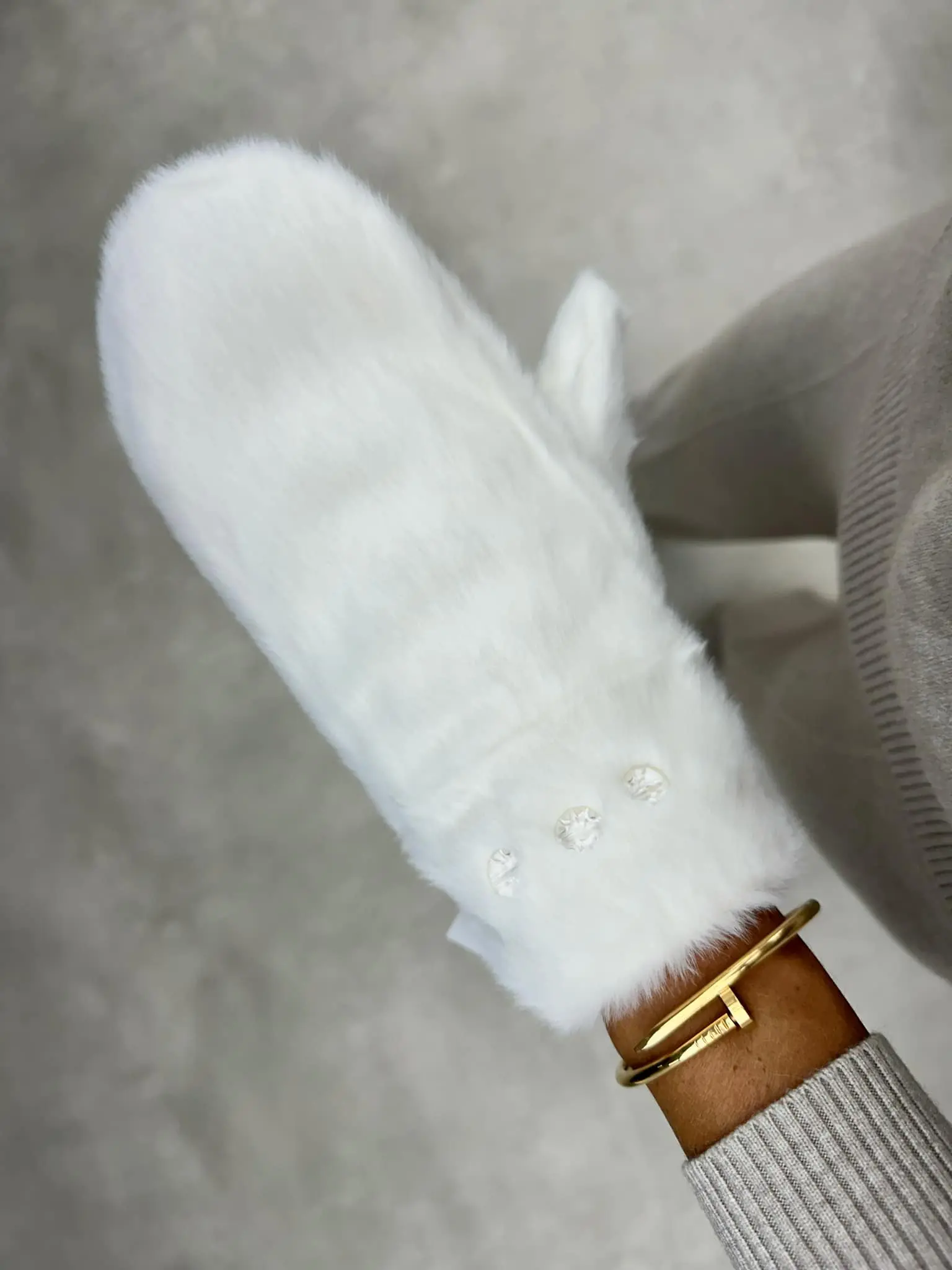 Kumštinės dirbtinio kailio pirštinės su deimančiukais