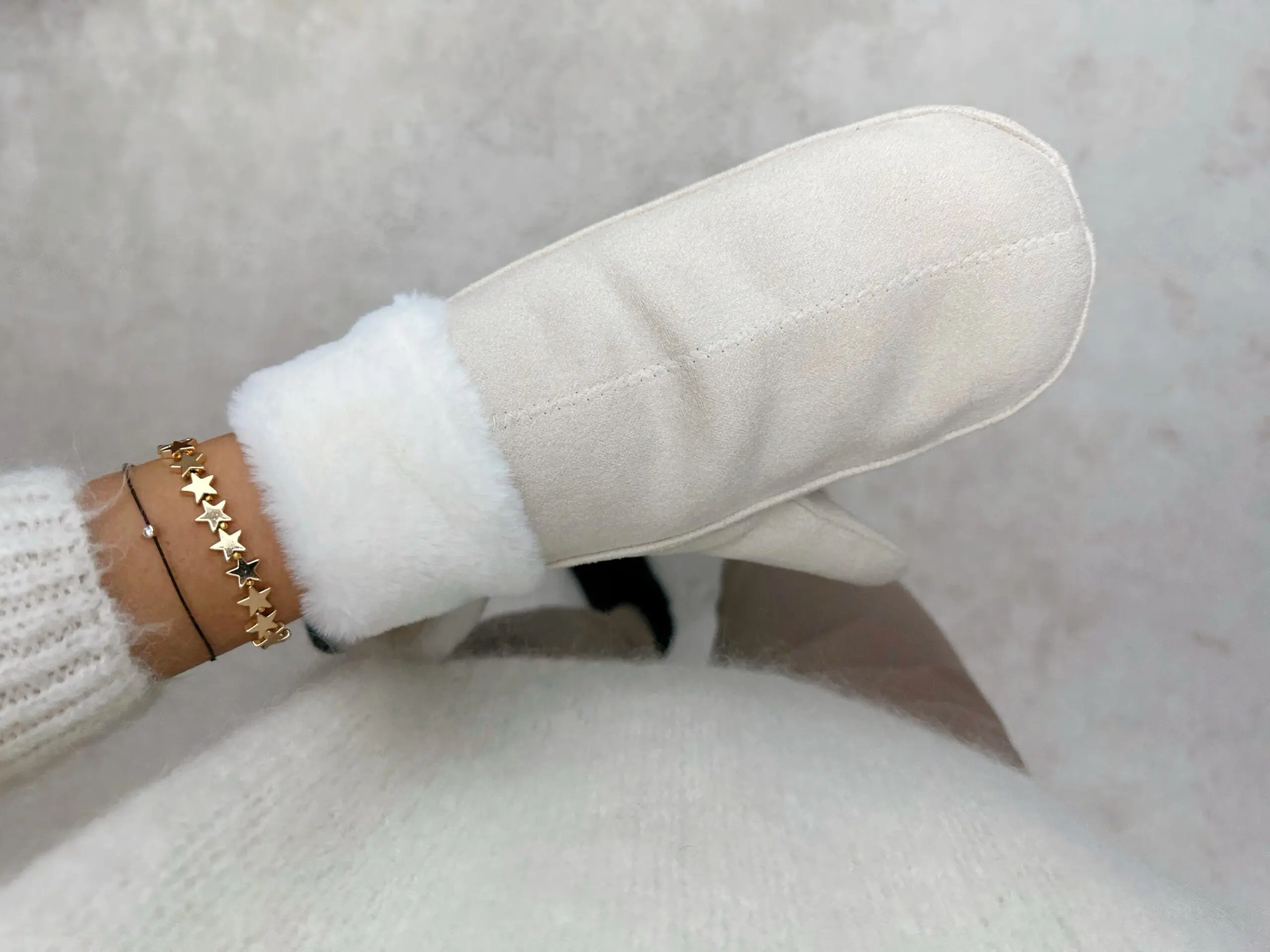 Kumštinės pirštinės su dirbtiniu kailiuku – baltos spalvos