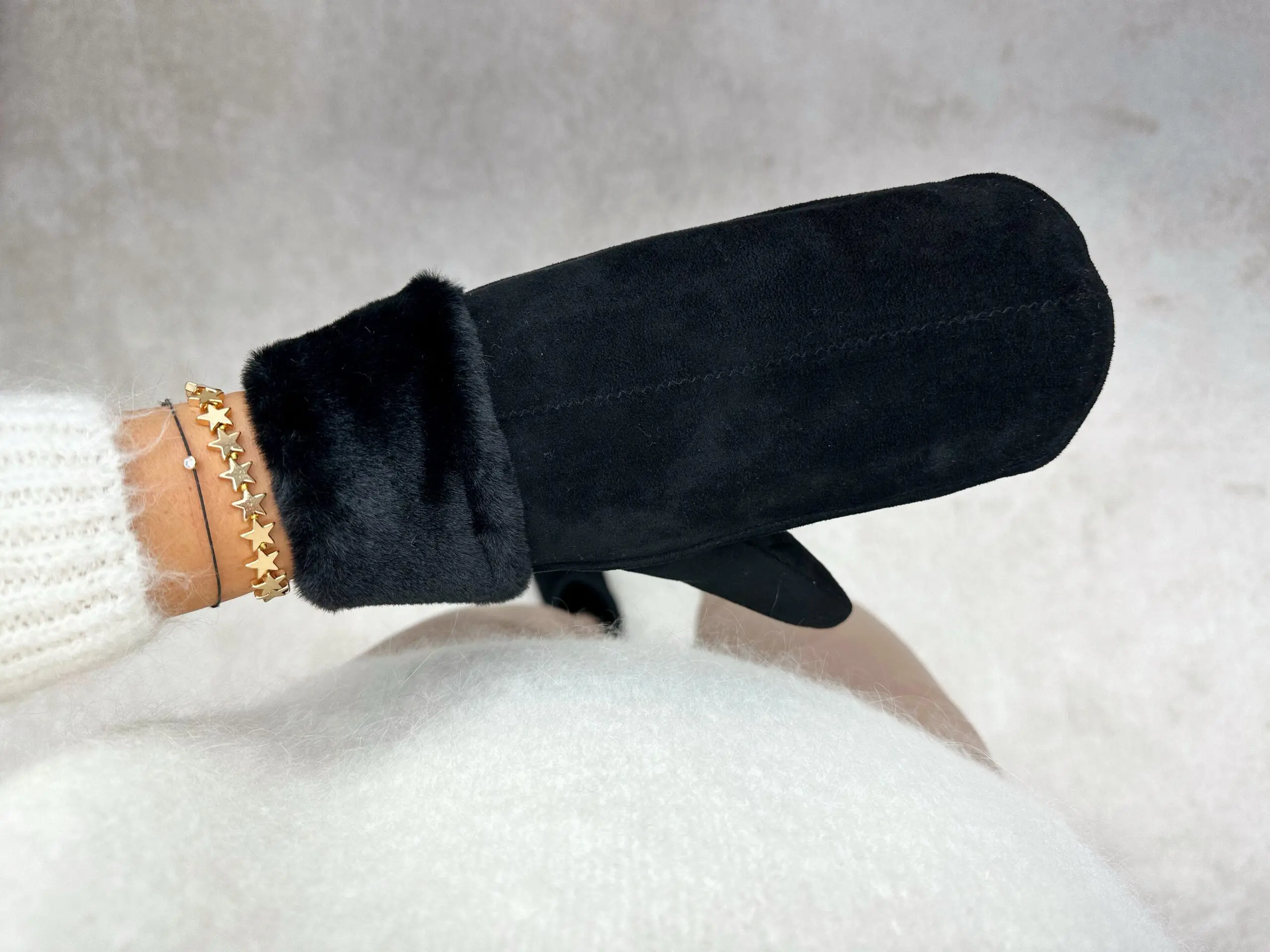 Kumštinės pirštinės su dirbtiniu kailiuku – juodos spalvos