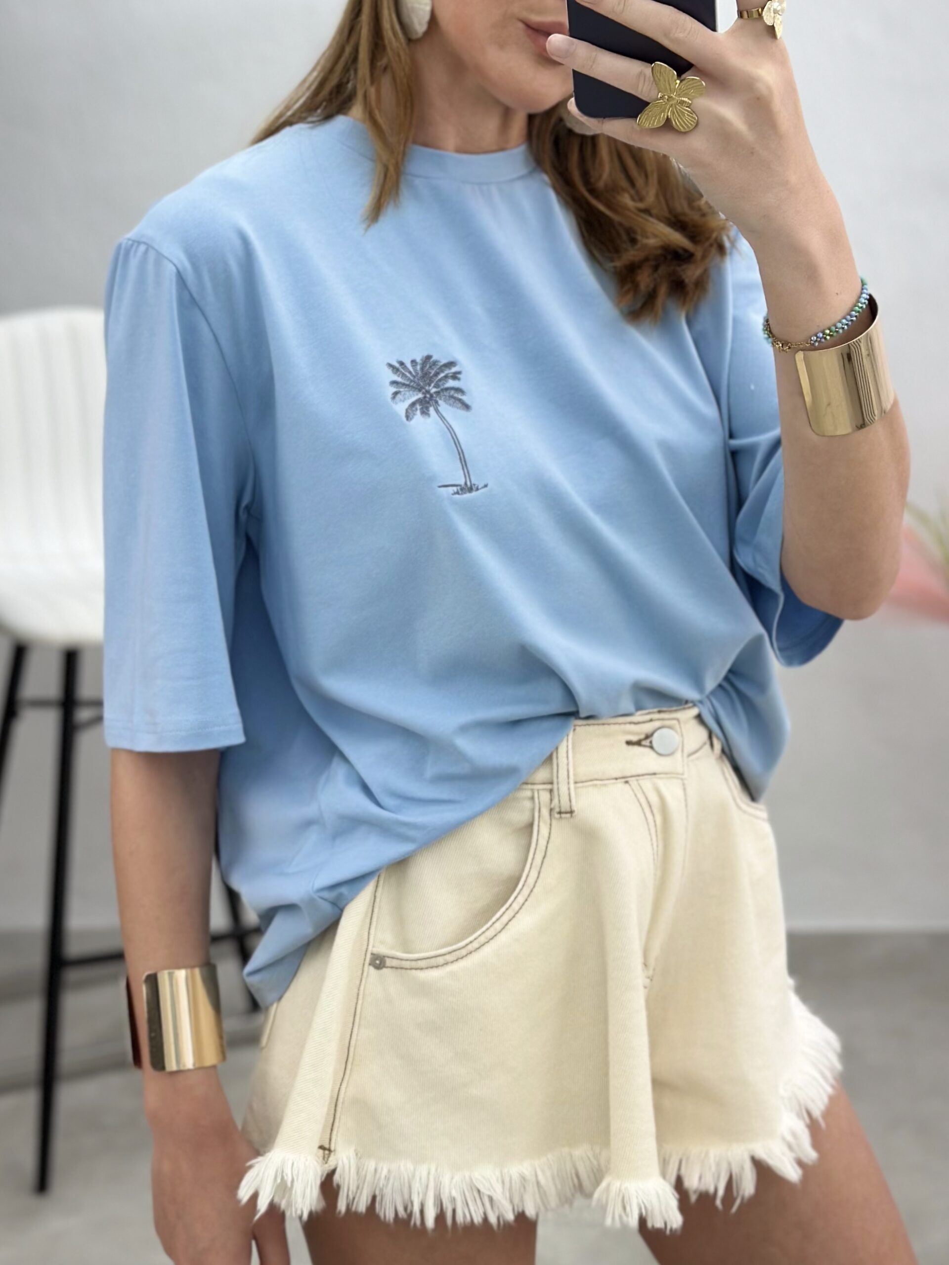 Laisvalaikio marškinėliai trumpomis rankovėmis pasižymi lengvumu ir patogumu. Vasaros nuotaiką kuriantis žaismingas printas suteikia įvaizdžiui gyvumo ir išskirtinumo.