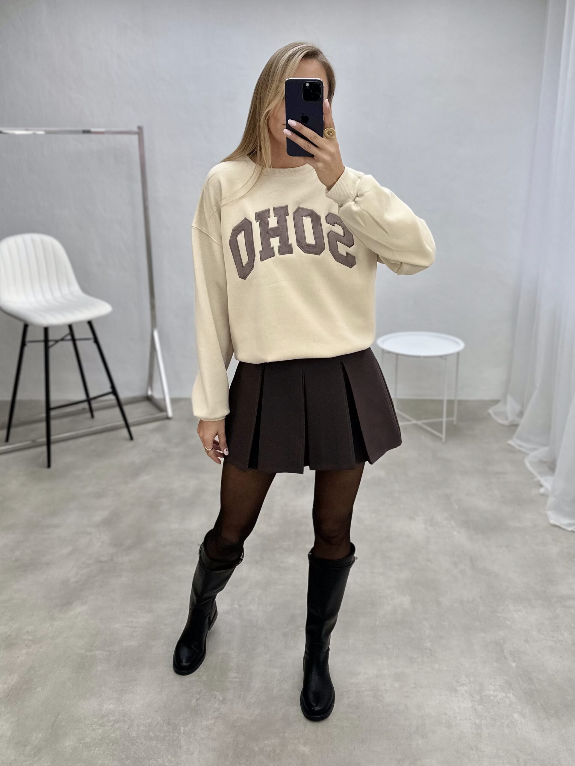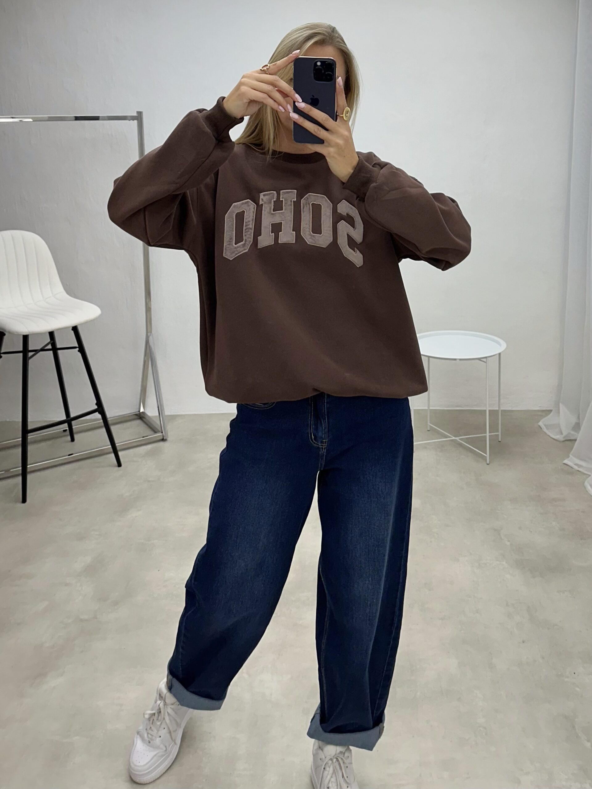 Laisvo silueto džemperis oversize modelio – stilingas ir patogus pasirinkimas su išraiškingu užrašu. Puikiai tinka kasdienai, suteikia laisvumo ir šiuolaikiško įvaizdžio.
