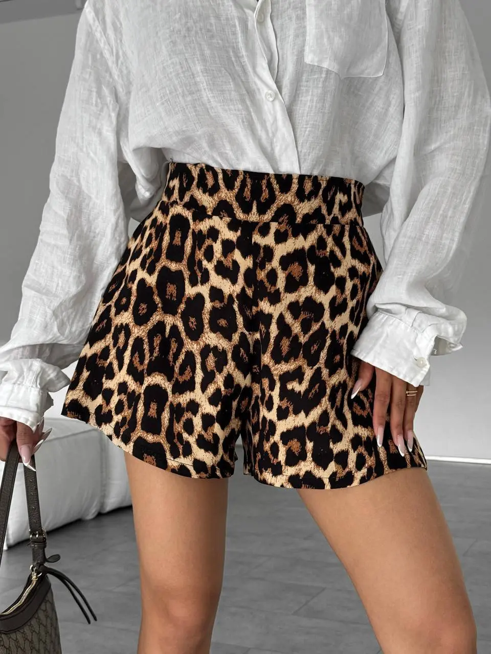 Stilingi leopardo rašto šortai, puikus pasirinkimas kiekvienai dienai.