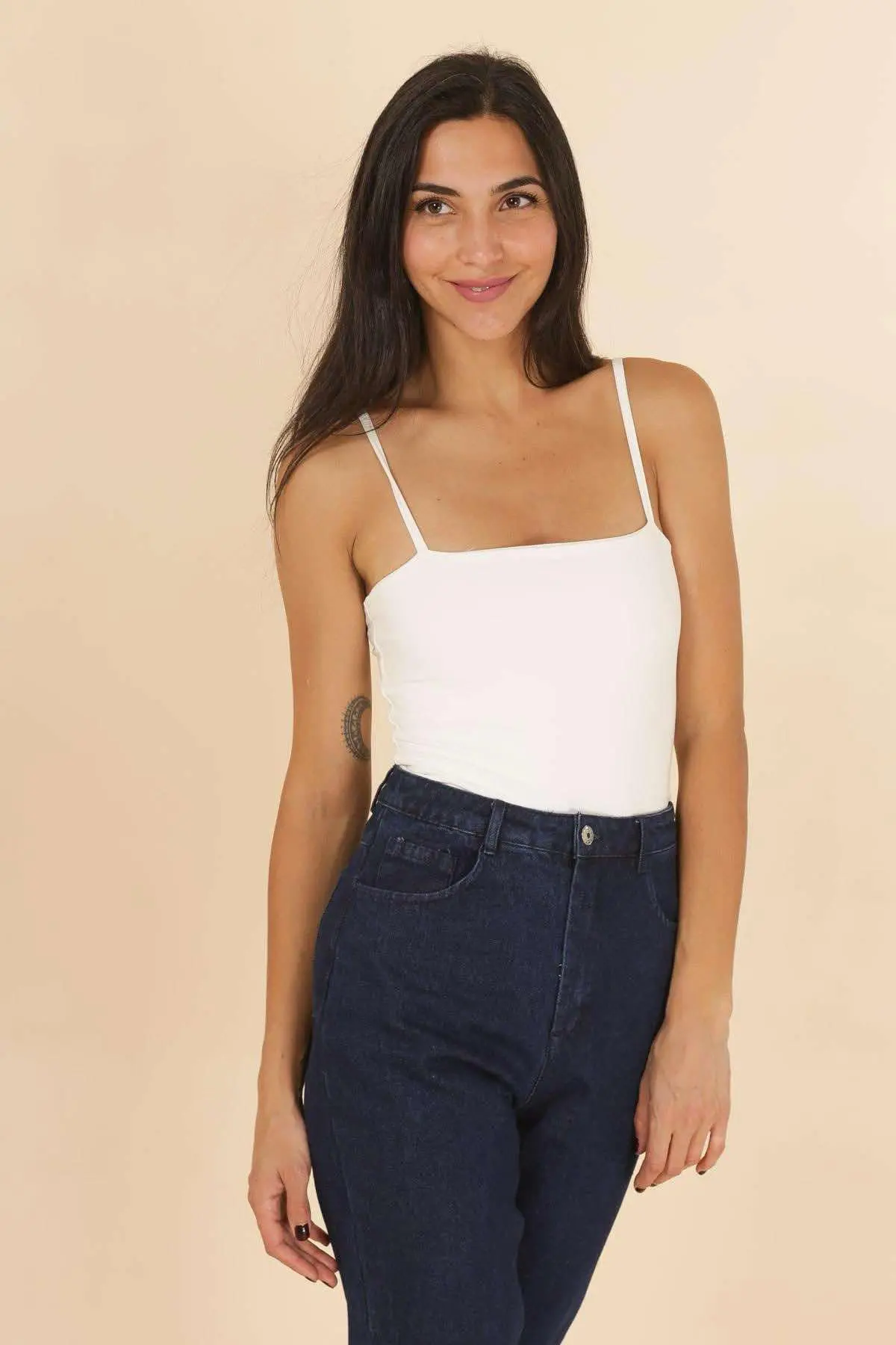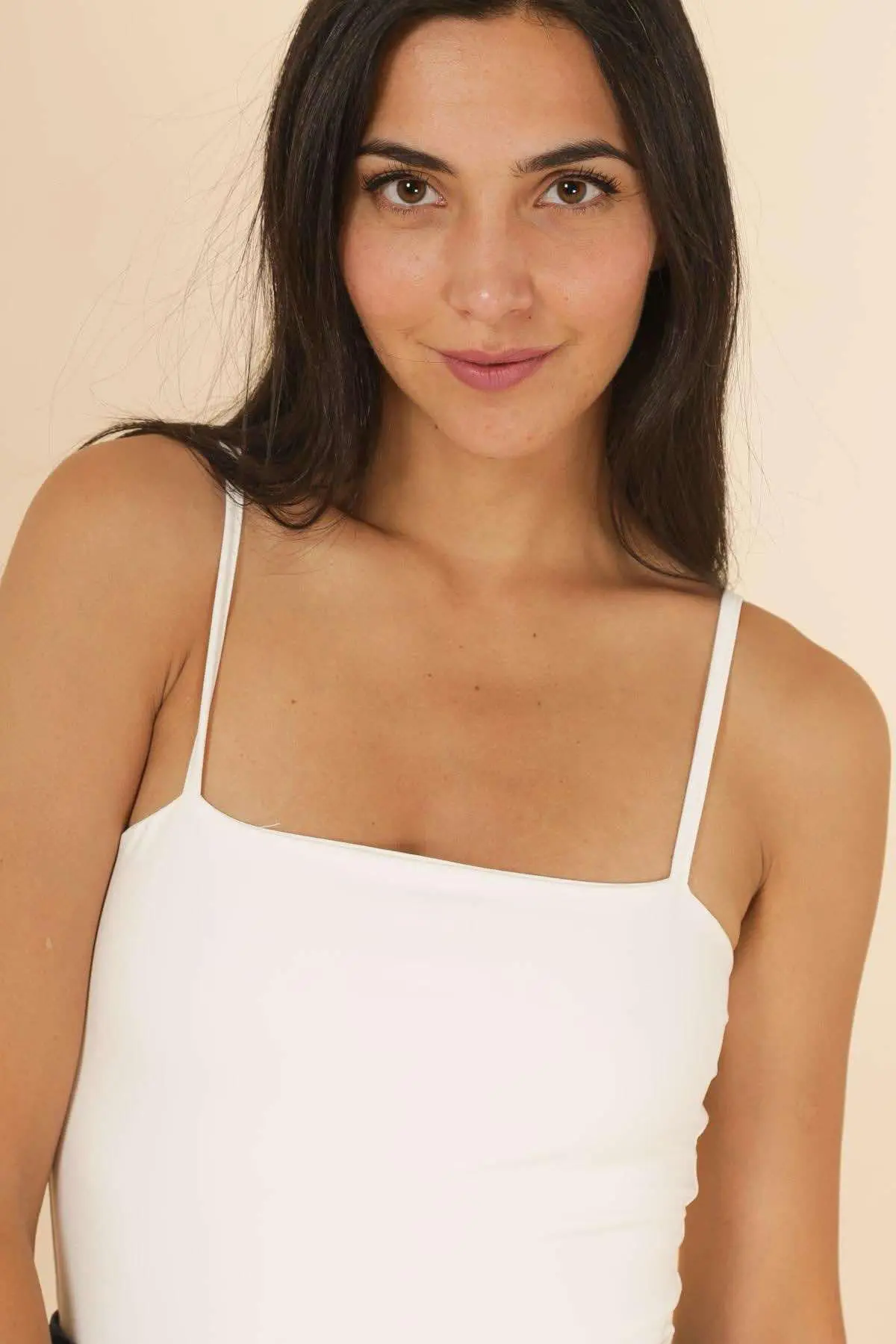 Aptempta palaidinė ant petnešėlių yra universali bazė, tinkanti dėvėti po švarkais ar megztiniais. Jos minimalistinis dizainas lengvai derinamas tiek su kasdiene, tiek su puošnesne apranga.