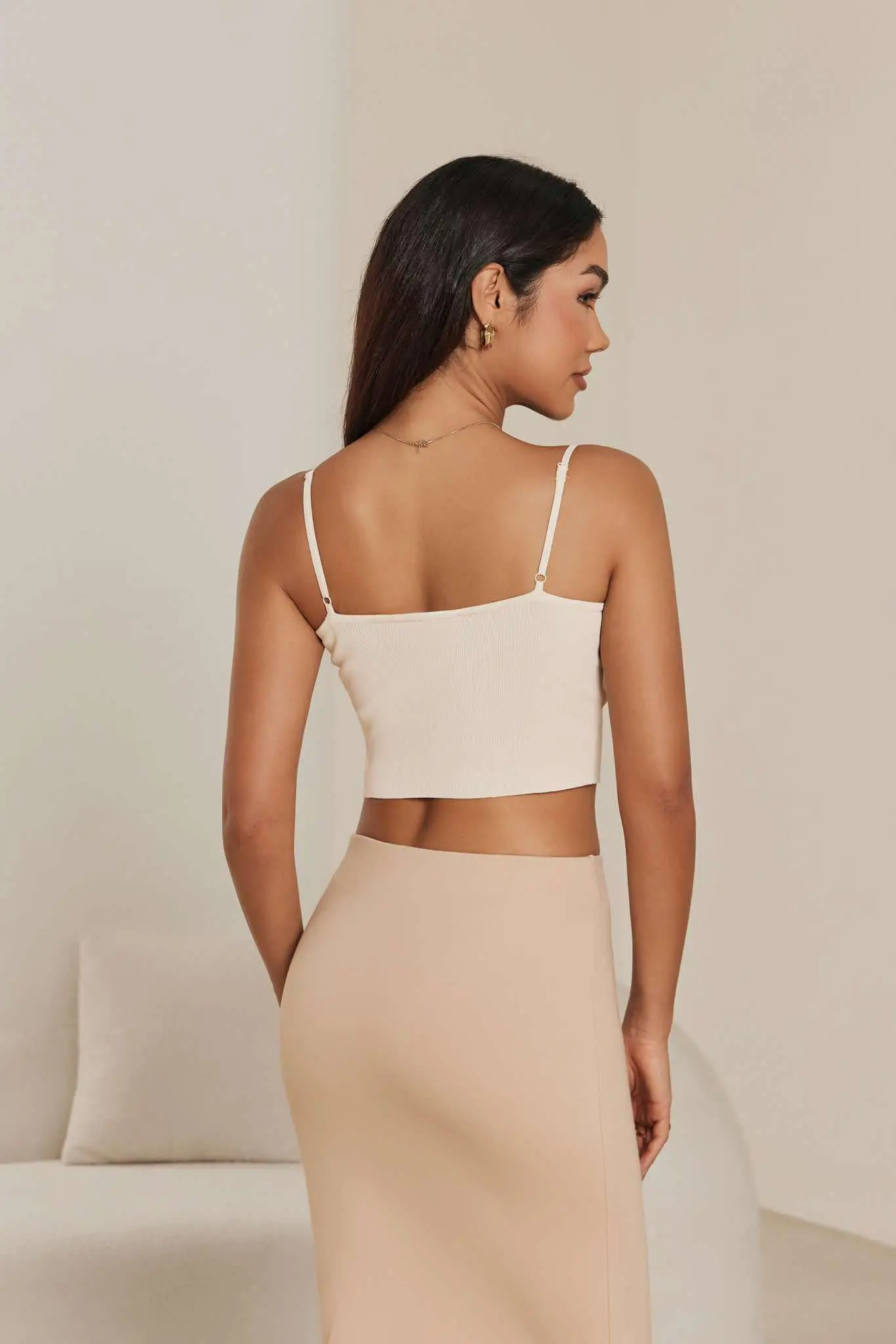 Aptempta palaidinė ant petnešėlių yra universali bazė, tinkanti dėvėti po švarkais ar megztiniais. Jos minimalistinis dizainas lengvai derinamas tiek su kasdiene, tiek su puošnesne apranga.