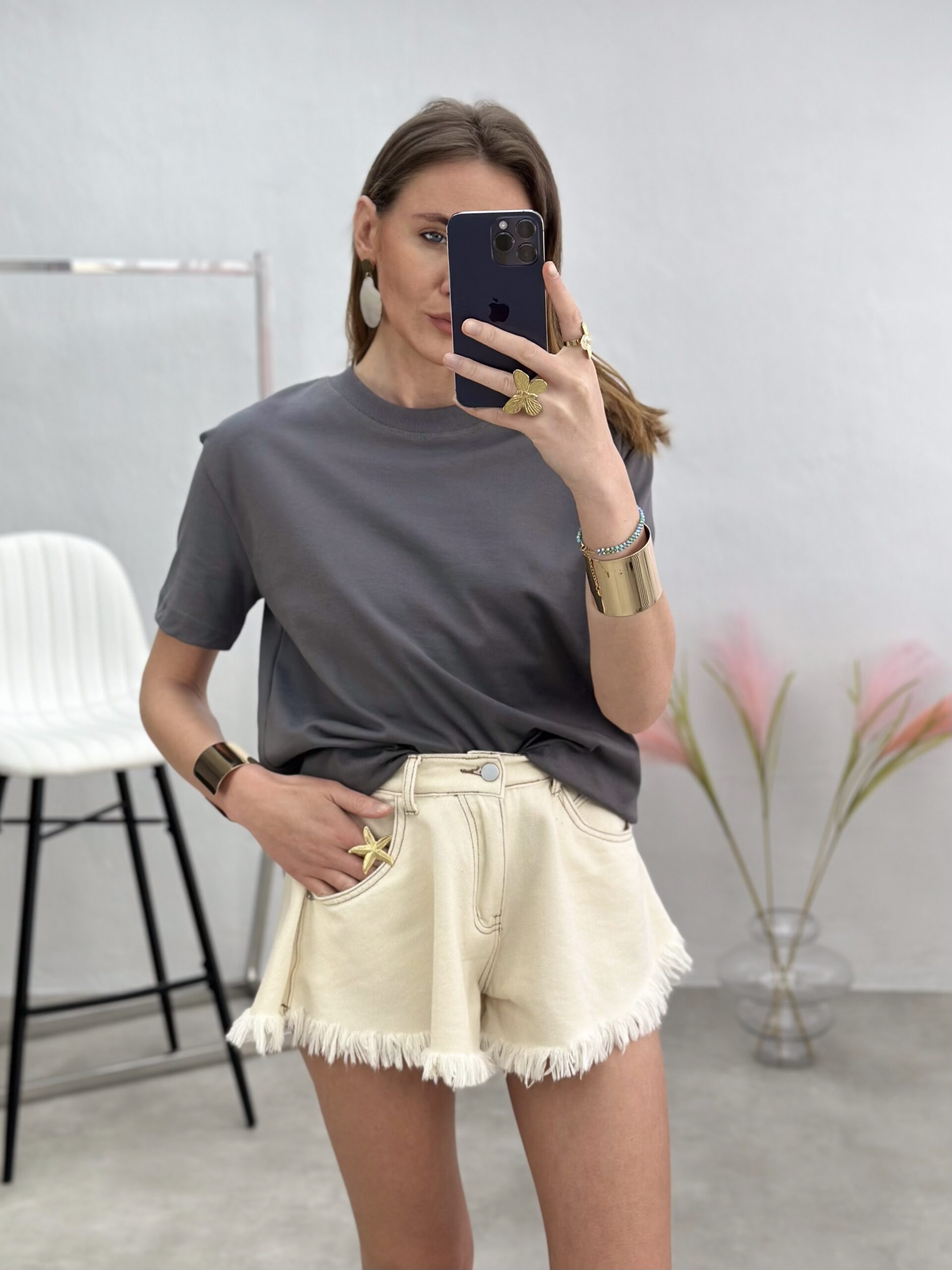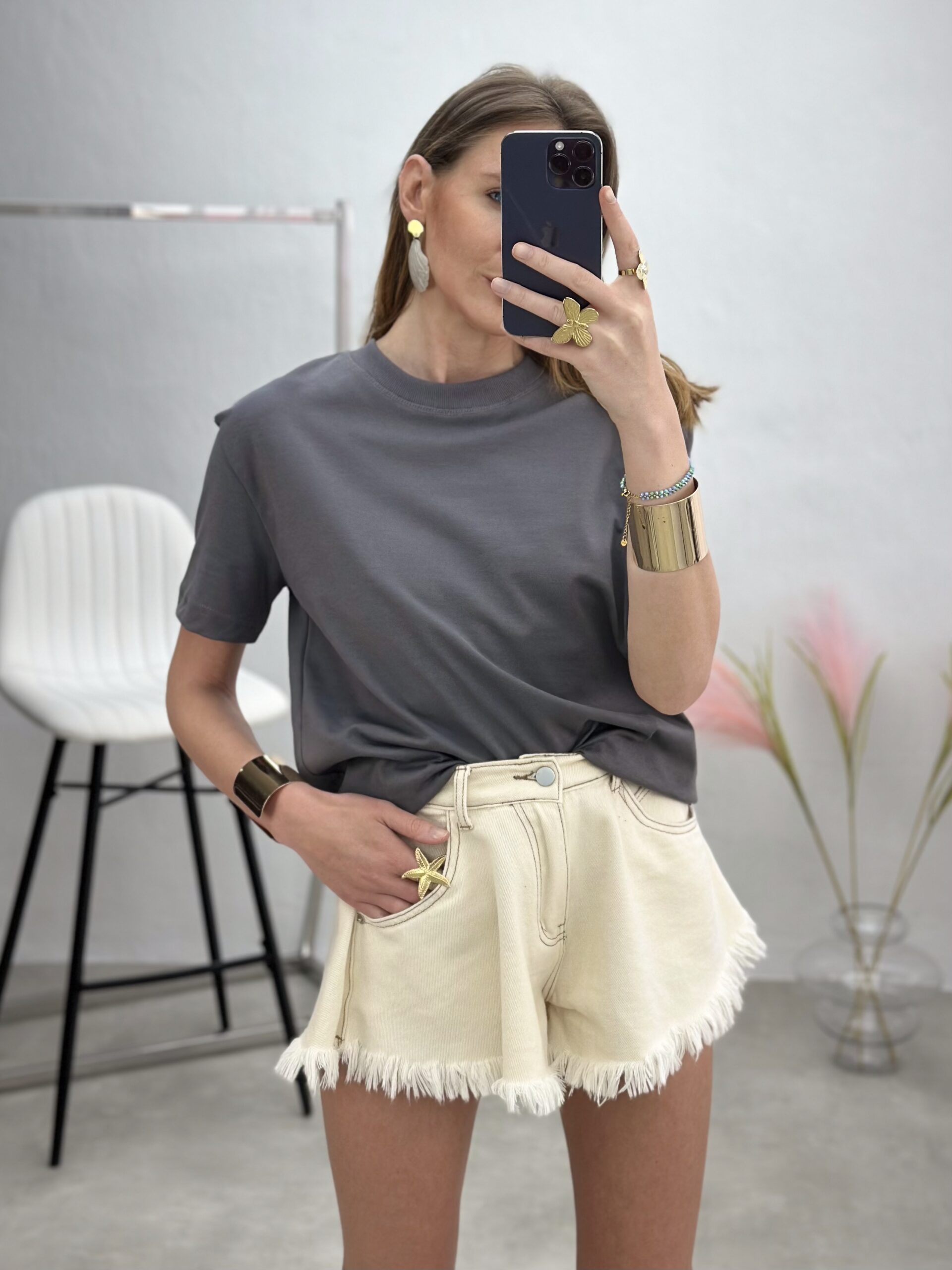 Marškinėliai trumpomis rankovėmis – klasikinis ir universalus garderobo elementas. Tinka įvairioms progoms bei lengvai derinami su tiek laisvalaikio, tiek kasdienio stiliaus apranga.