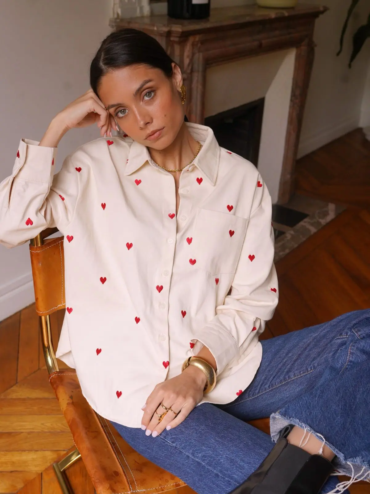 Marškiniai su širdelėmis suteikia žaismingą ir jaunatvišką įvaizdį. Patogus kirpimas ir subtilus raštas puikiai tinka kasdieniams deriniams.
