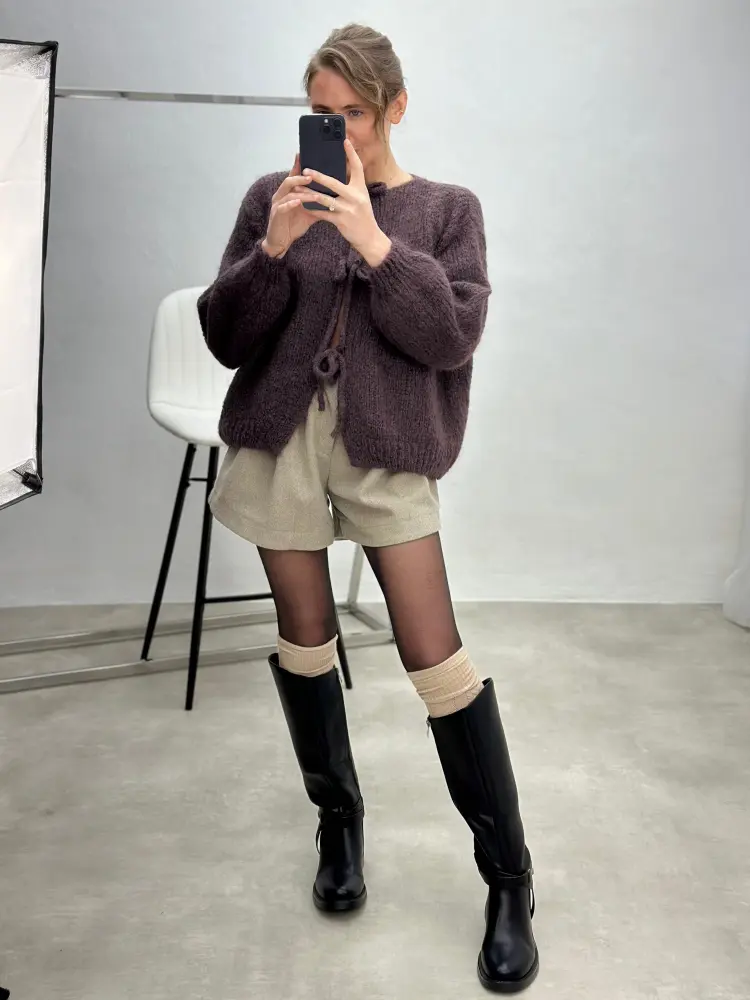 Minkštas megztinis su raišteliais priekyje – jaukus ir stilingas pasirinkimas vėsesniam sezonui. Laisvo kirpimo modelis suteikia patogumo, o švelni tekstūra užtikrina šilumą ir malonų pojūtį dėvint.