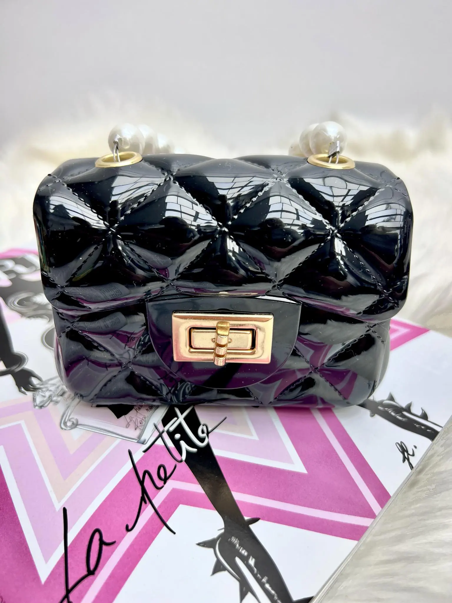 Mini rankinė su perliukais – black