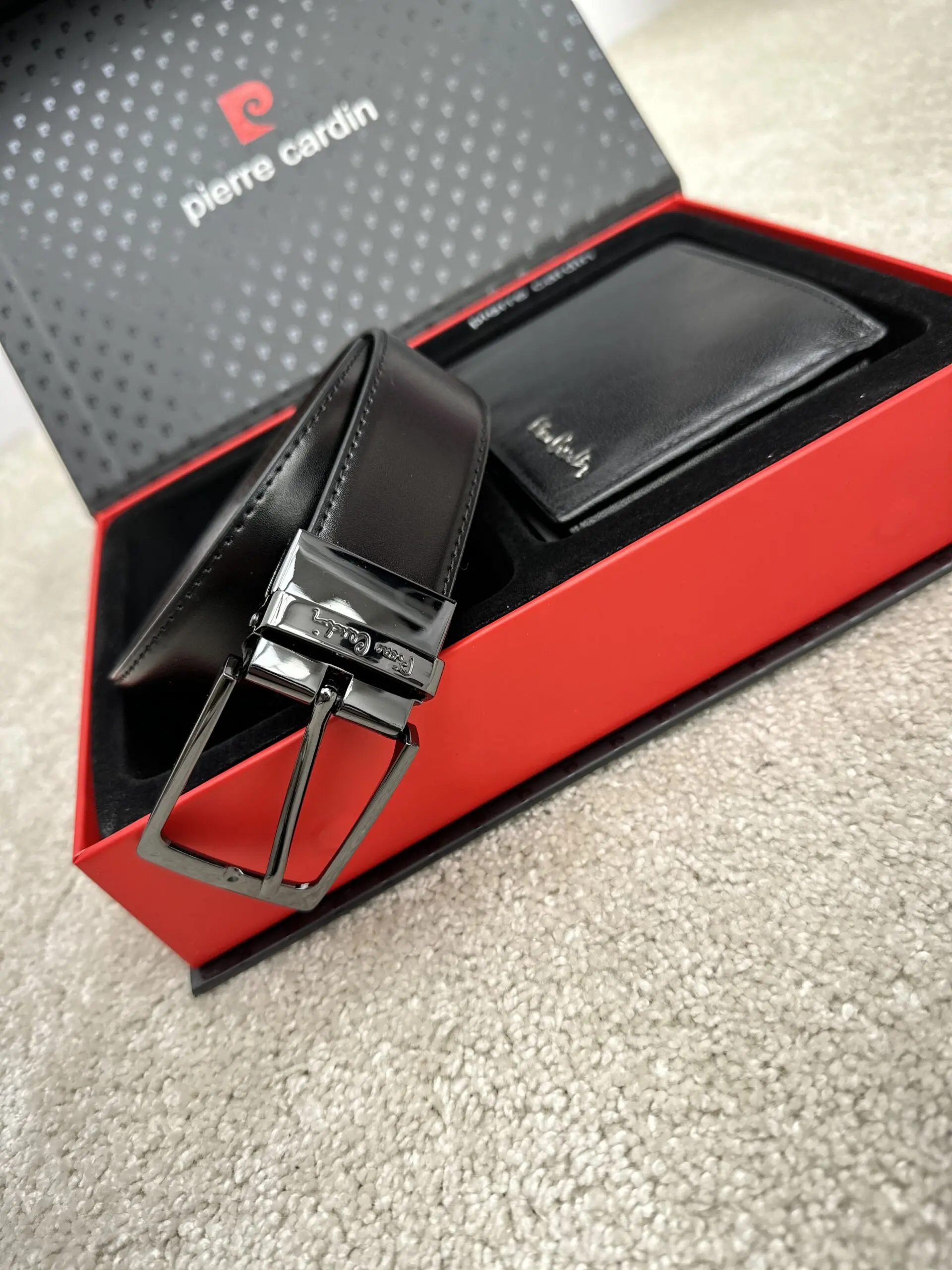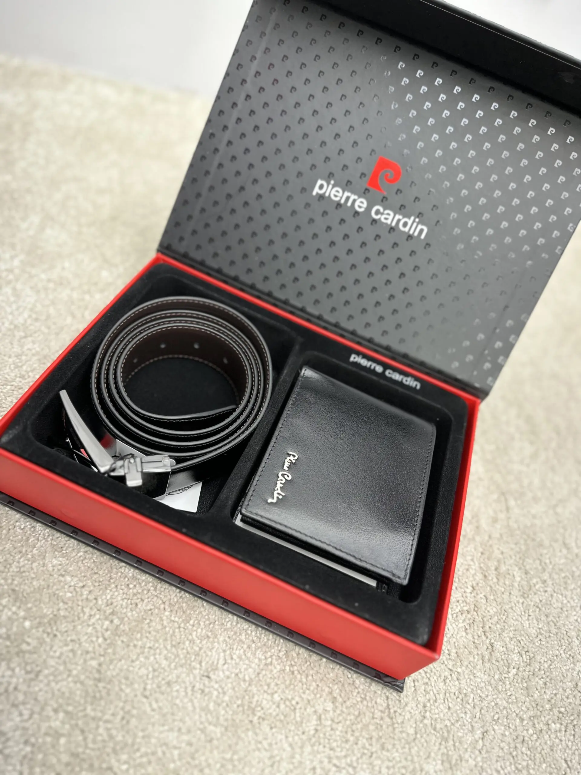 Natūralios odos Pierre Cardin piniginės ir diržo rinkinys