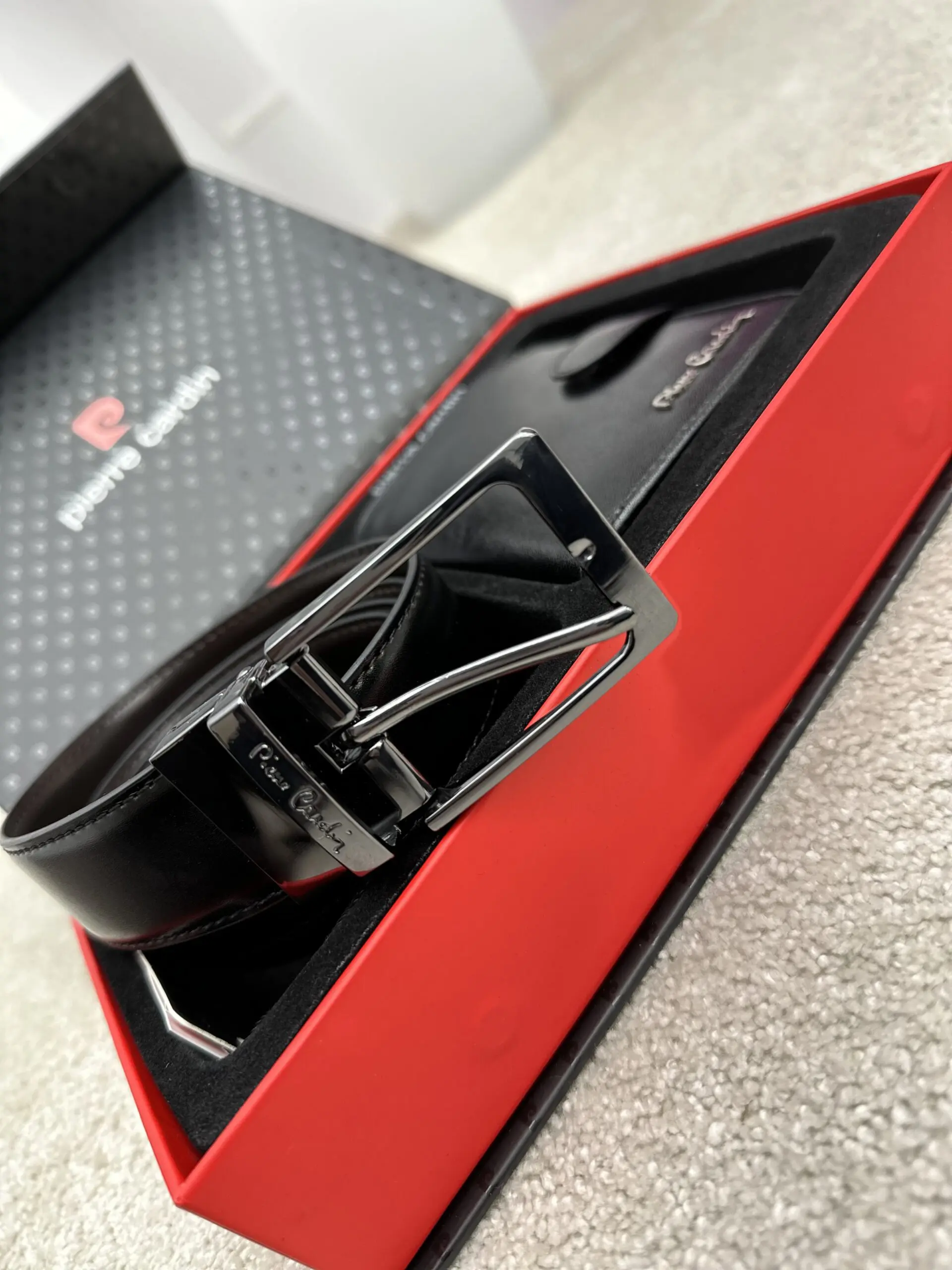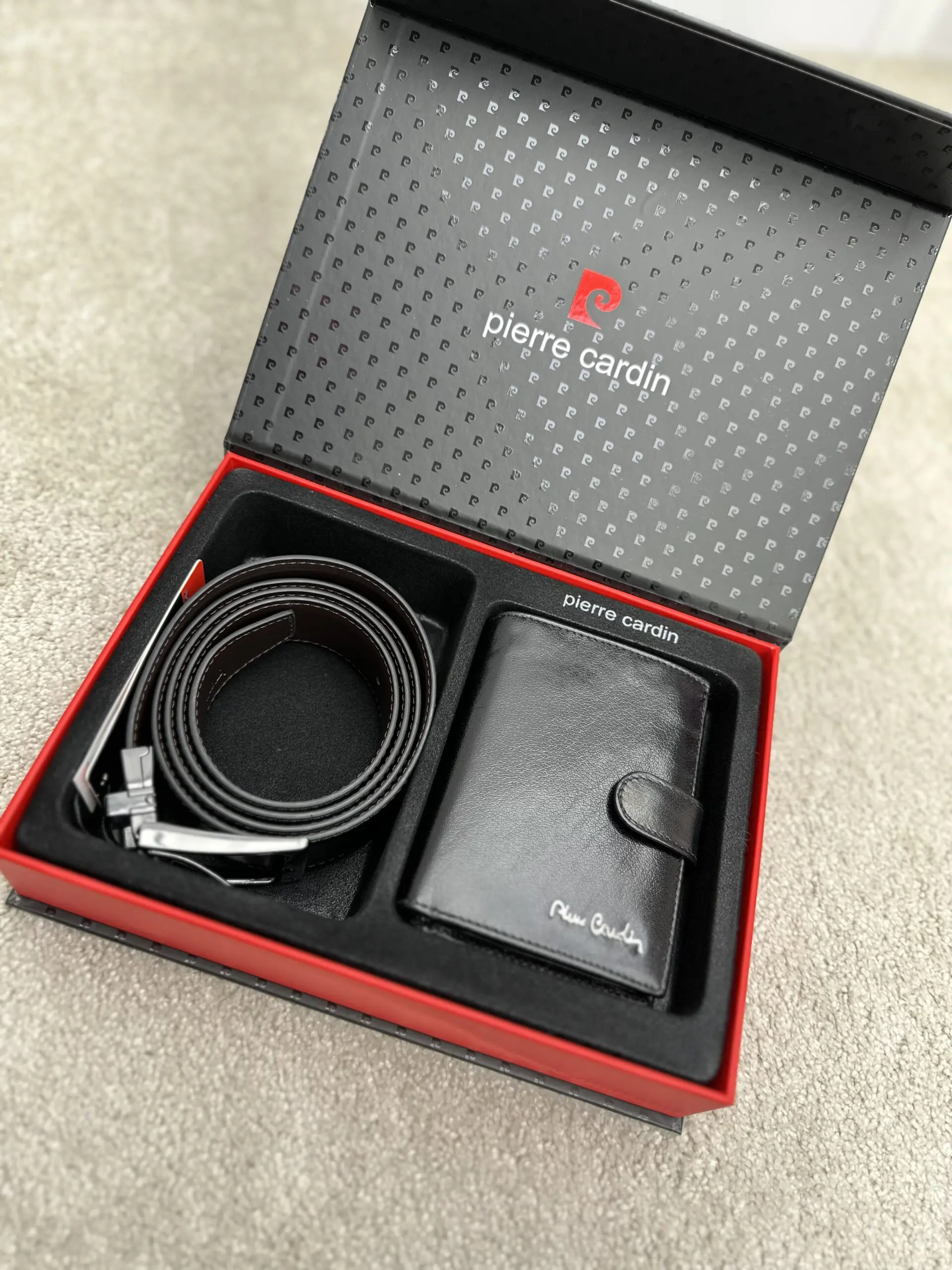 Natūralios odos Pierre Cardin piniginės ir diržo rinkinys