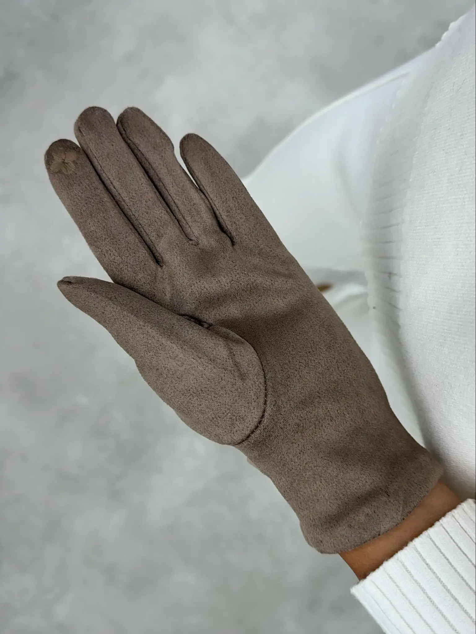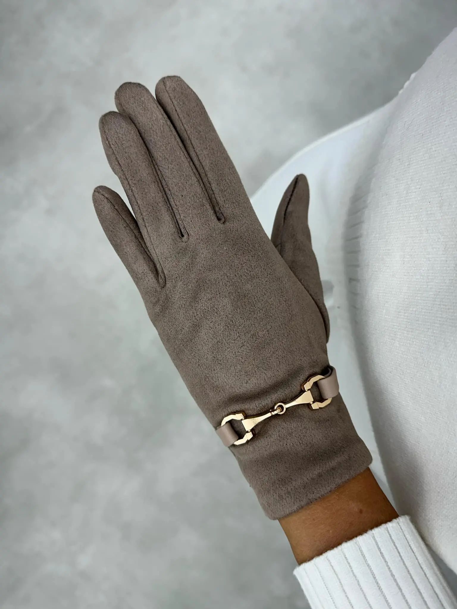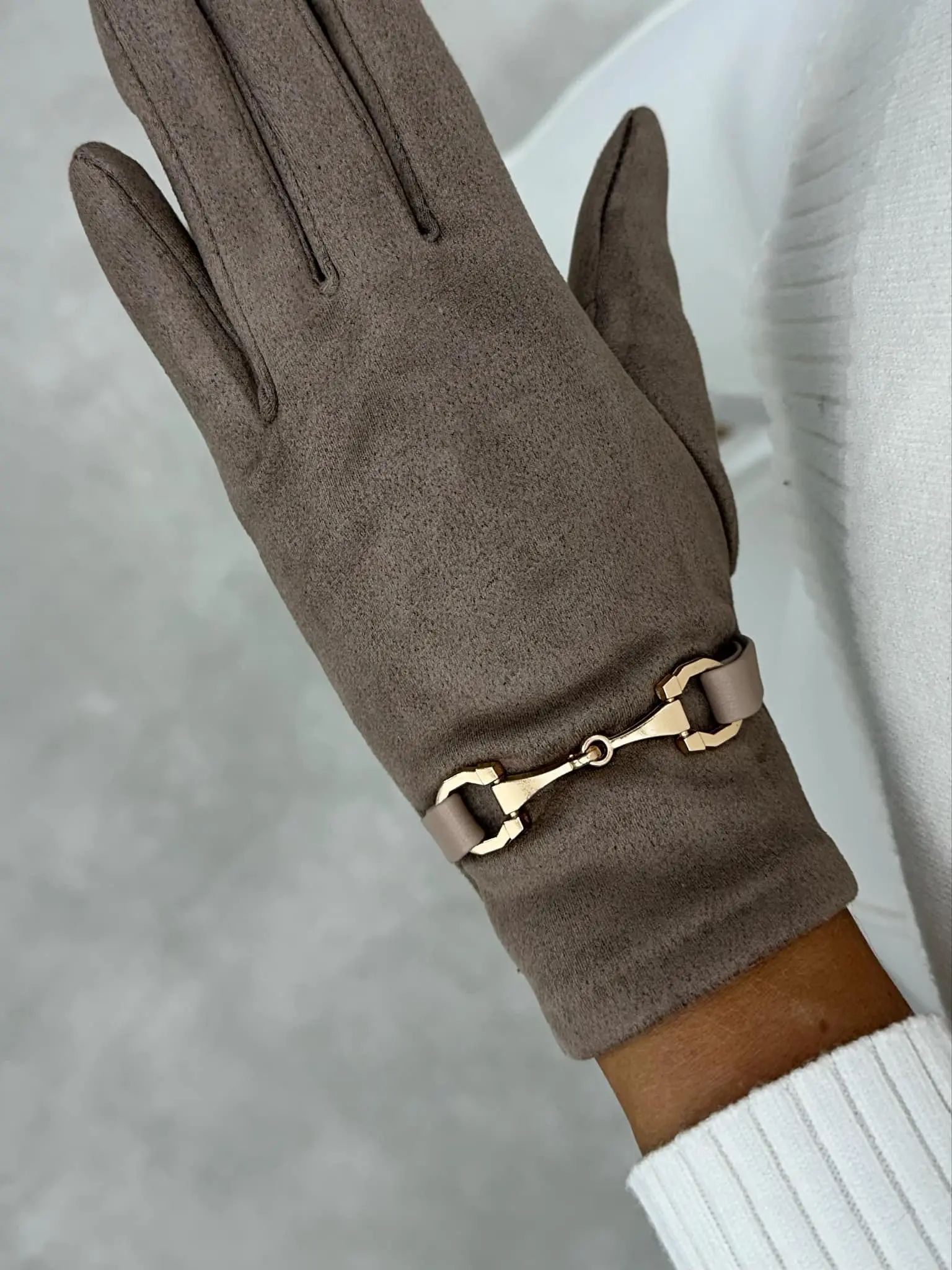 Klasikinio modelio pirštinės su auksinės spalvos detale ant riešo. Pirštinės – itin būtinas žieminis aksesuaras, kuris apsaugo šaltuoju sezonu.