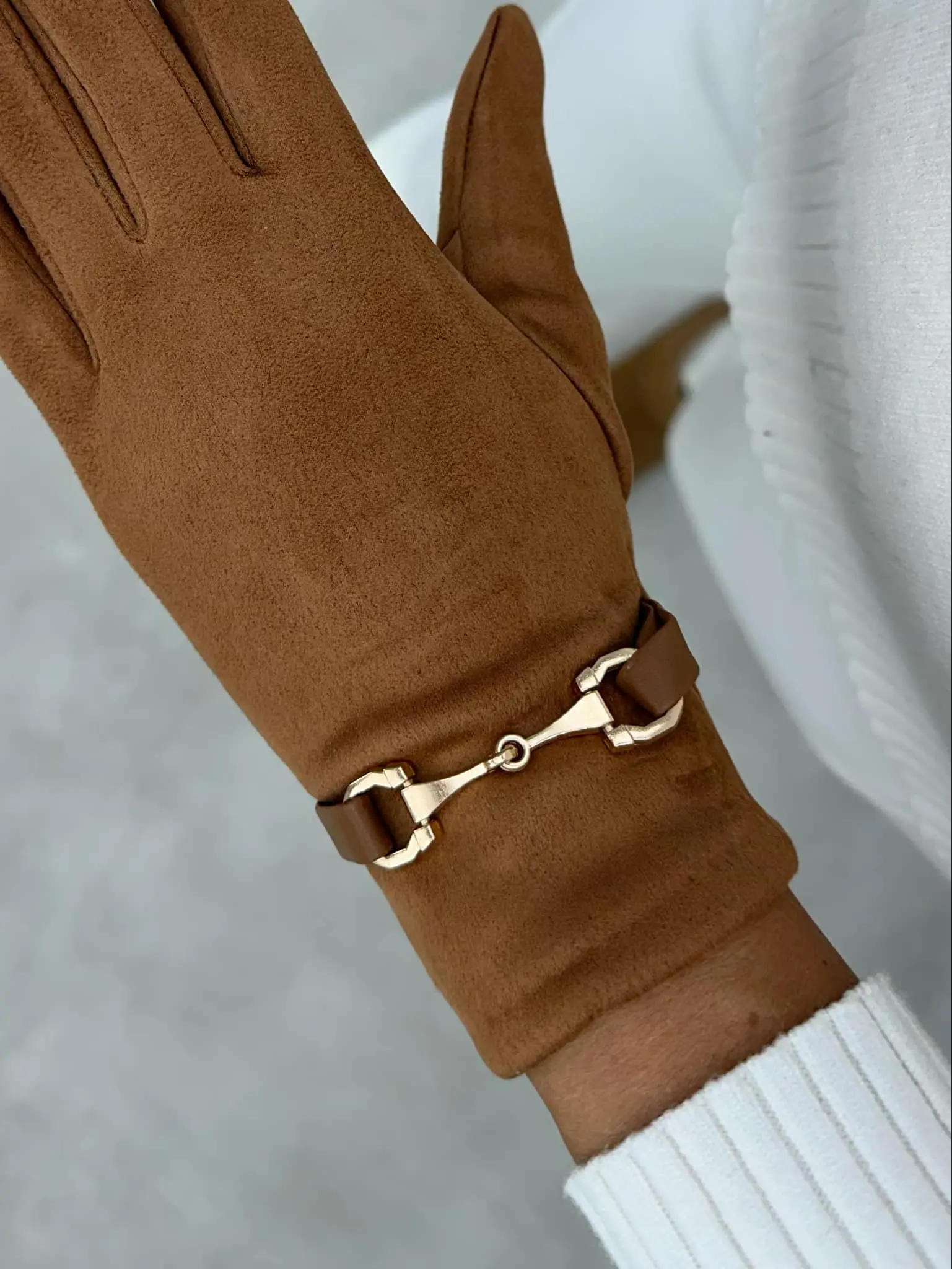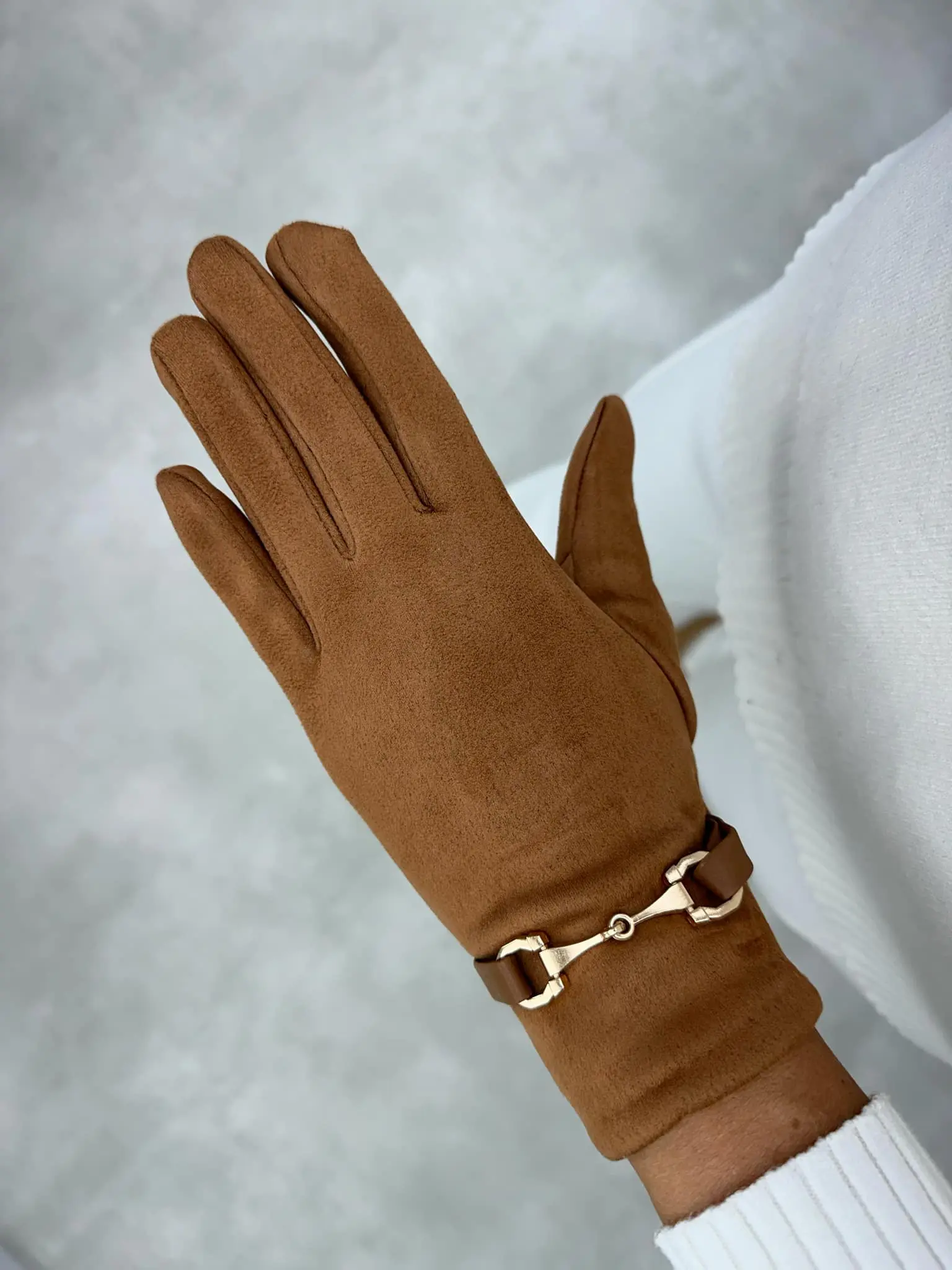Pirštinės su auksinės spalvos detale