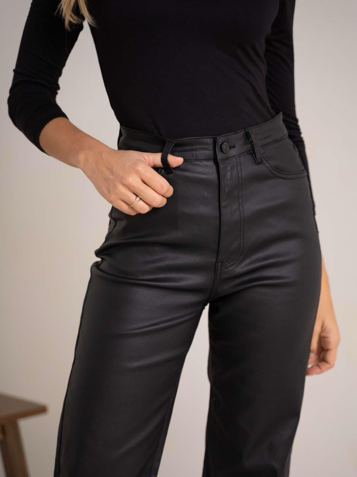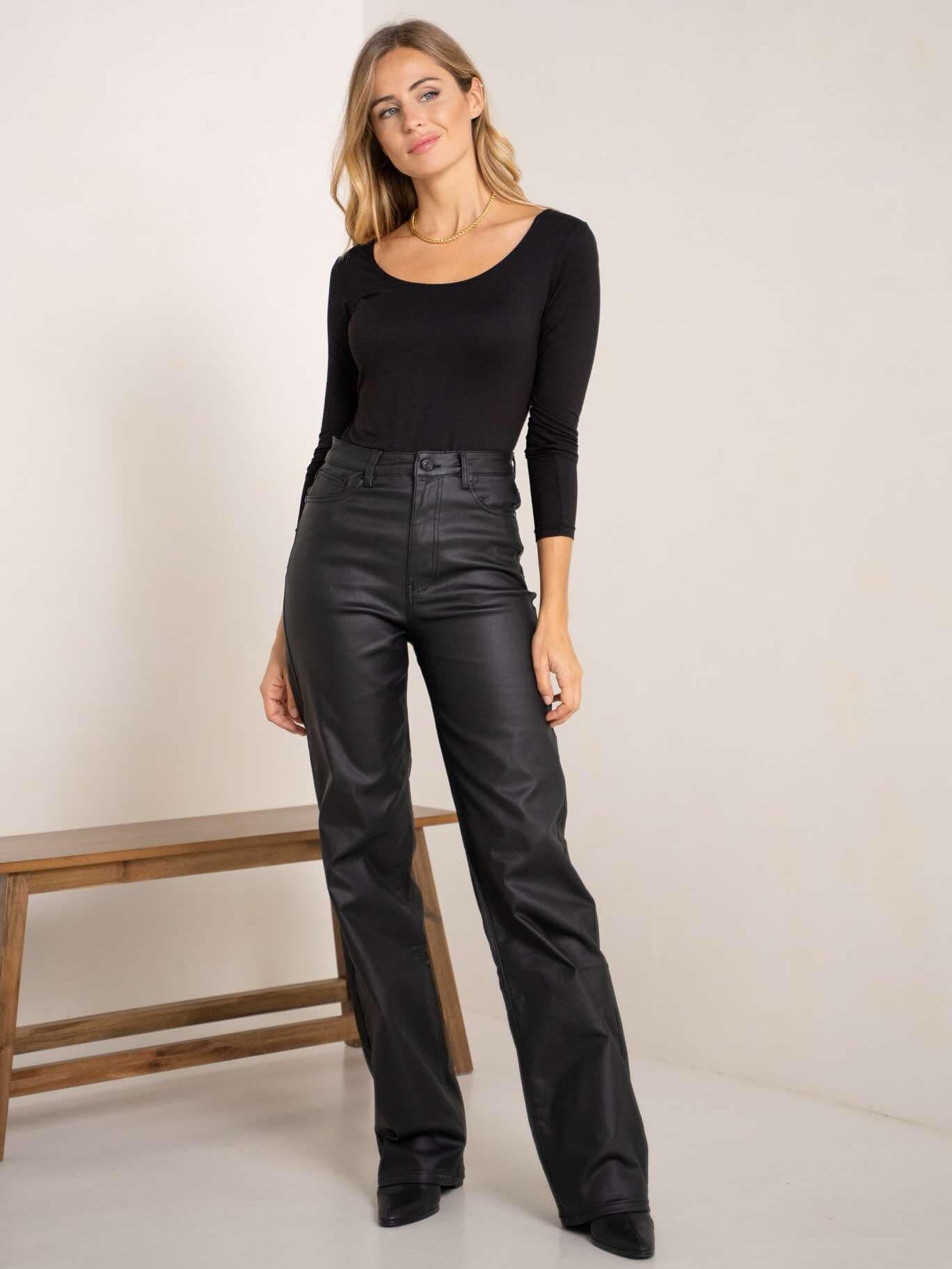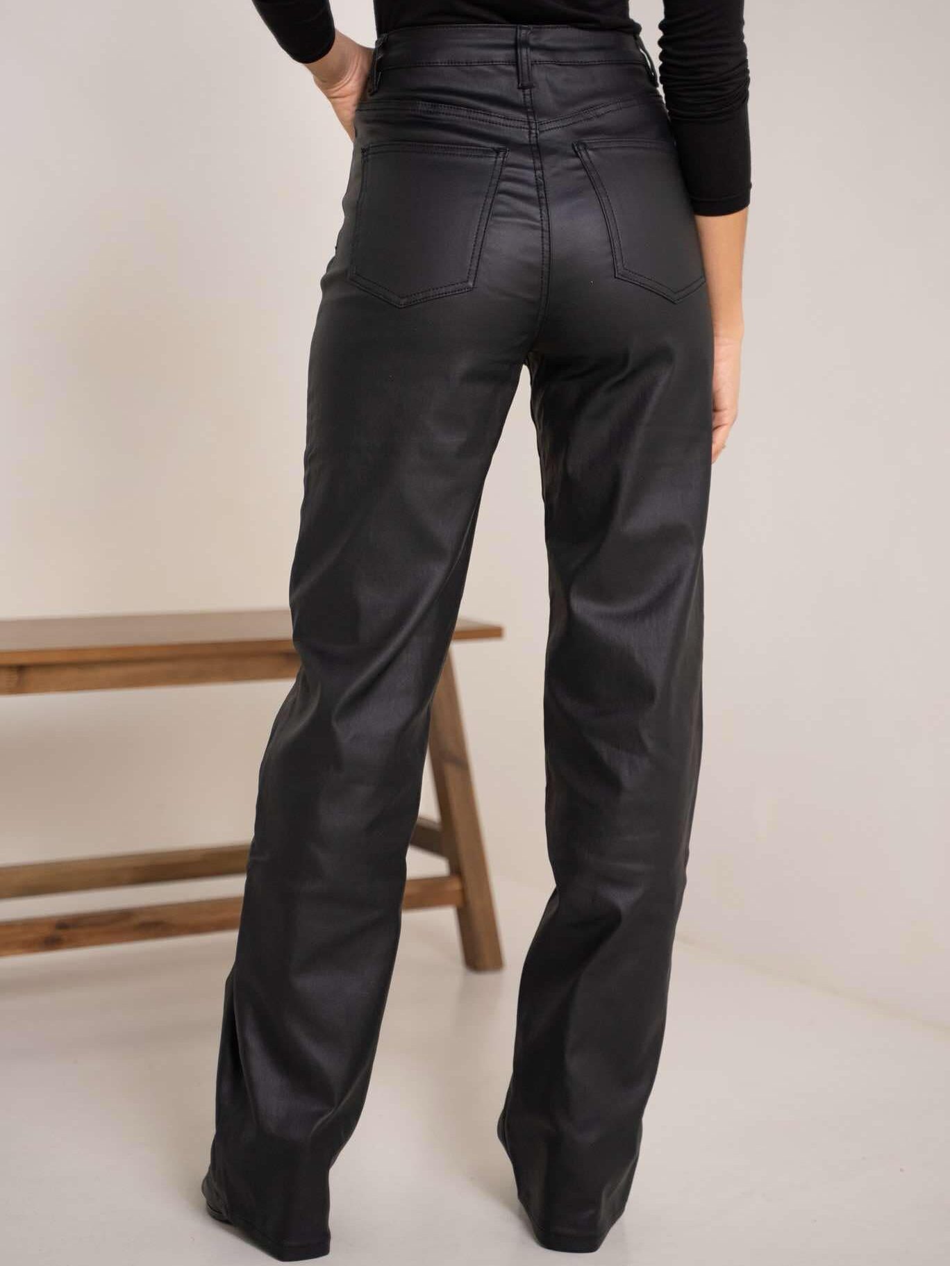 Platėjančios dirbtinės odos kelnės aukštu liemeniu – elegantiškas ir modernus pasirinkimas drąsiam įvaizdžiui. Lengvai priderinsite tiek prie klasikinio, tiek prie laisvalaikio stiliaus.