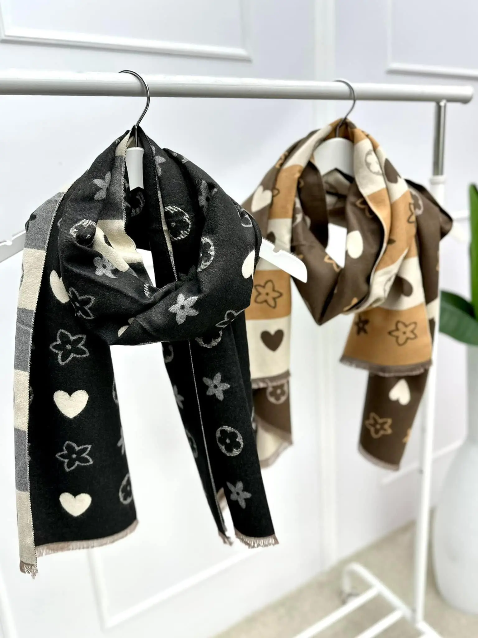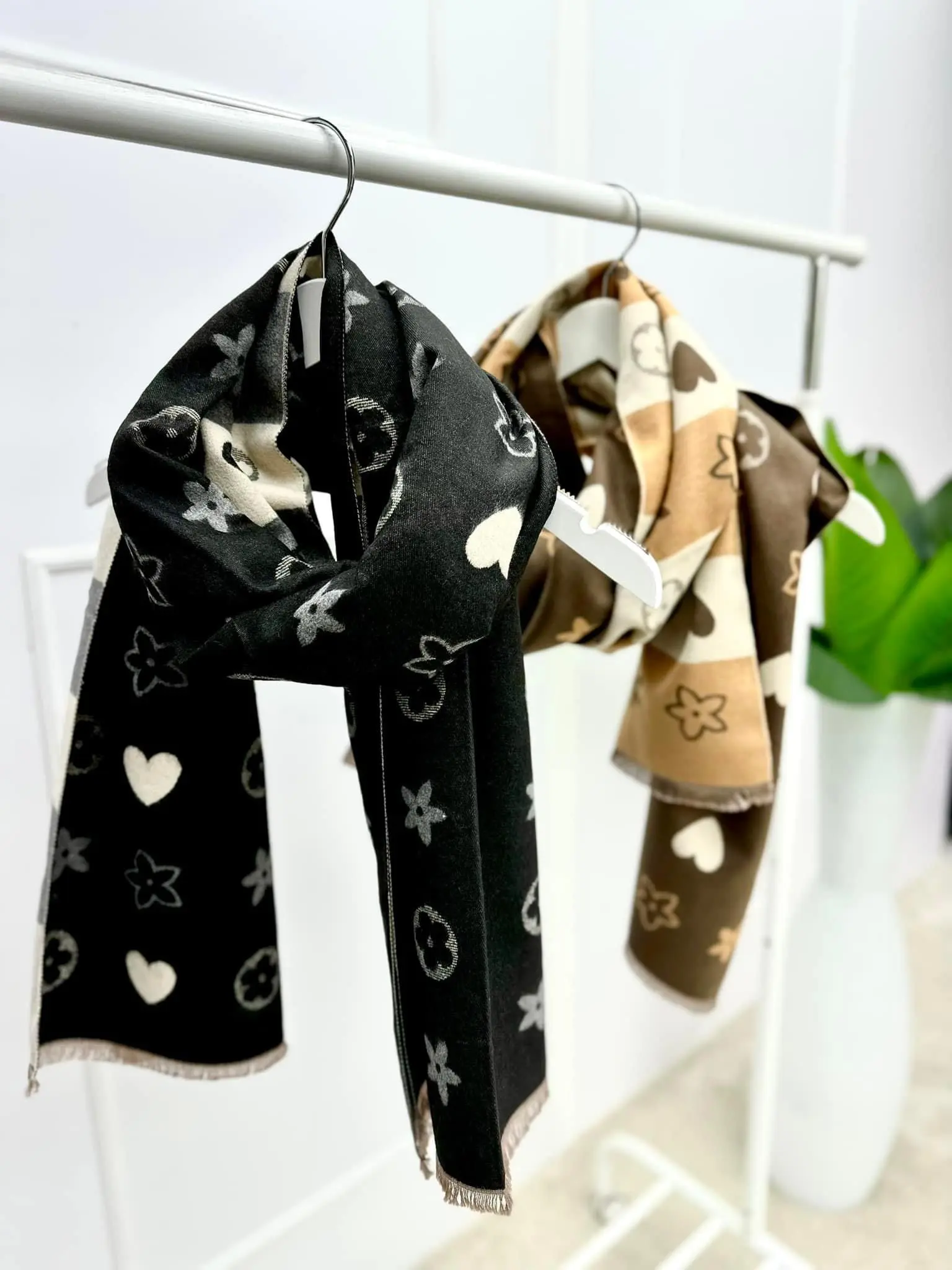 Šalikas dekoruotas širdelėmis