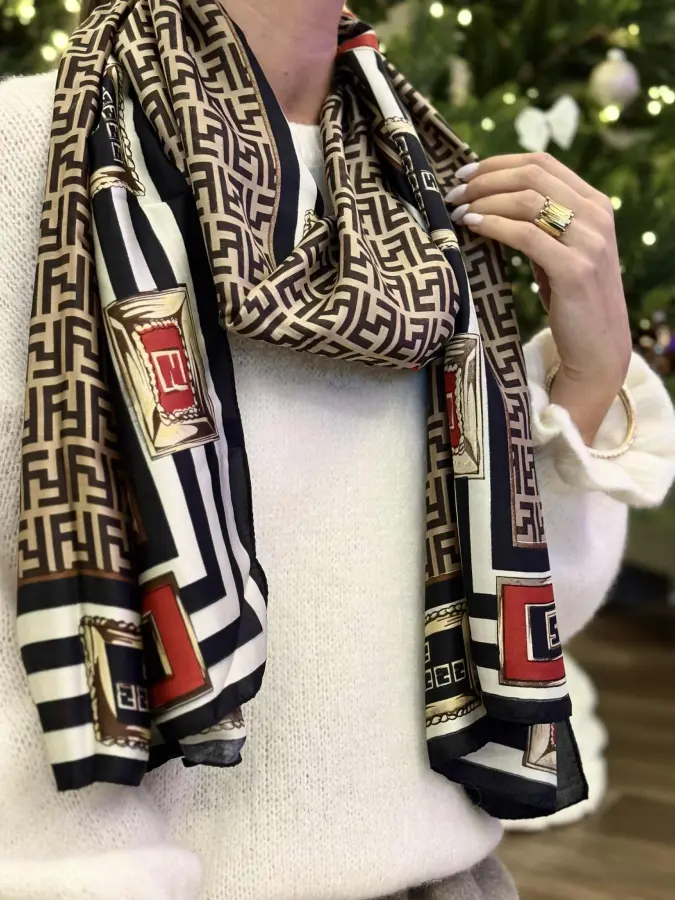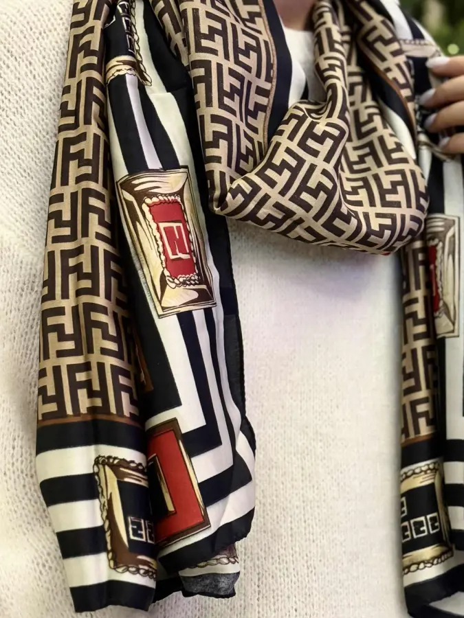 Lengva, jauki skarelė išsiskiria įdomiu raštu ir subtiliais akcentais, suteikiančiais stiliaus bei elegancijos. Puikiai tinka tiek kasdienai, tiek ypatingoms progoms.