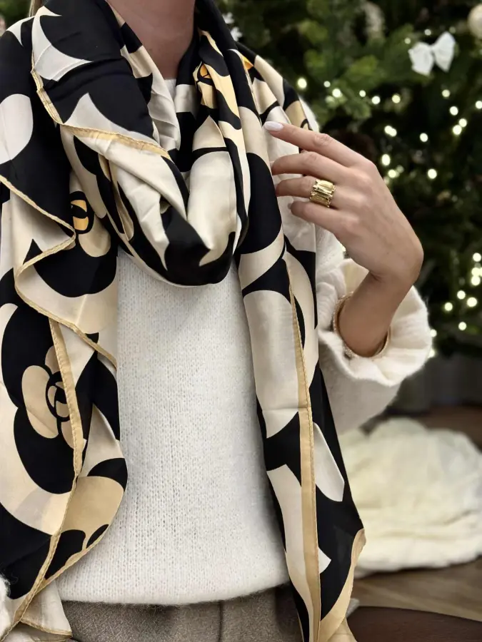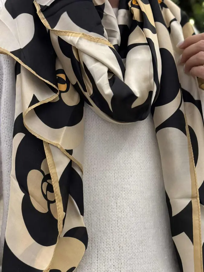 Lengva, jauki skarelė išsiskiria įdomiu raštu ir subtiliais akcentais, suteikiančiais stiliaus bei elegancijos. Puikiai tinka tiek kasdienai, tiek ypatingoms progoms.