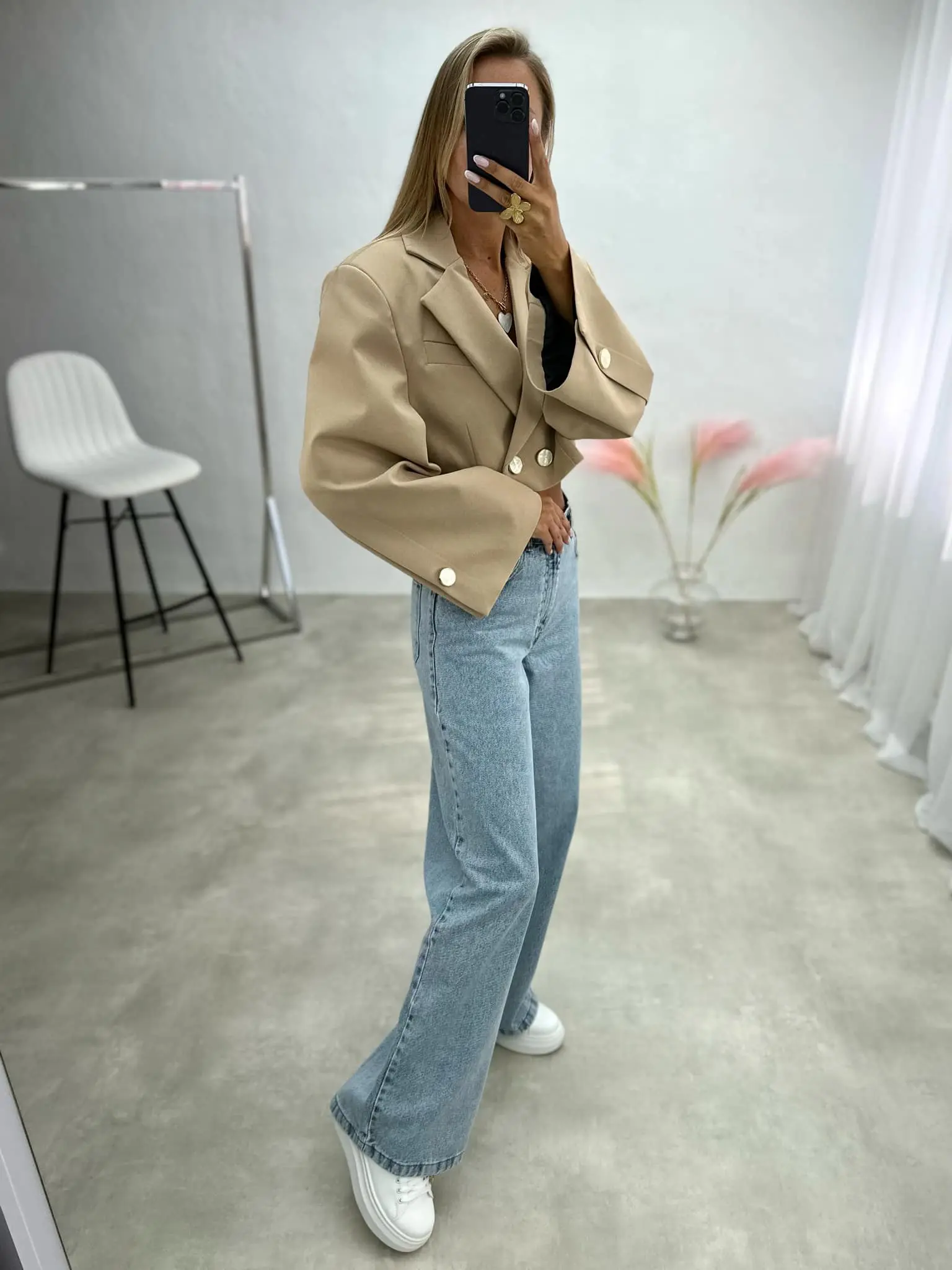 Stilingas trumpesnio kirpimo švarkas, suteikiantis modernumo ir elegancijos. Puikiai dera tiek prie klasikinių kelnių, tiek prie laisvalaikio džinsų.