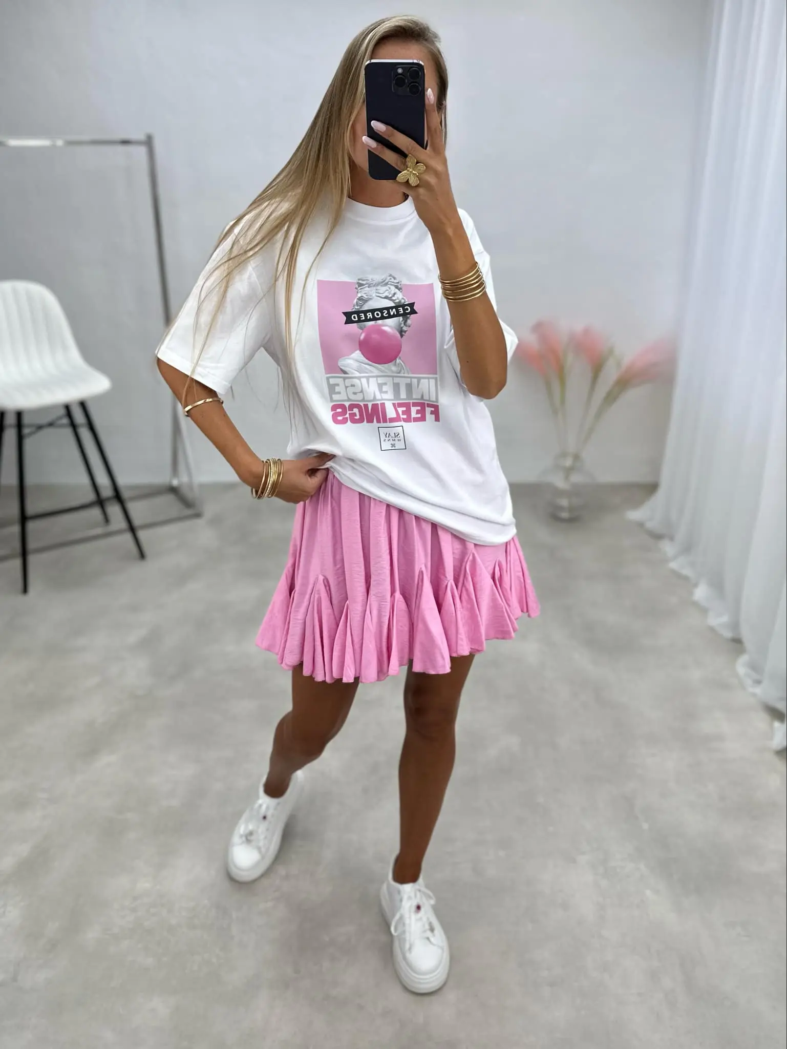 Stilingi ir vasariški marškinėliai trumpomis rankovėmis su printu – laisvam ir išskirtiniam įvaizdžiui.