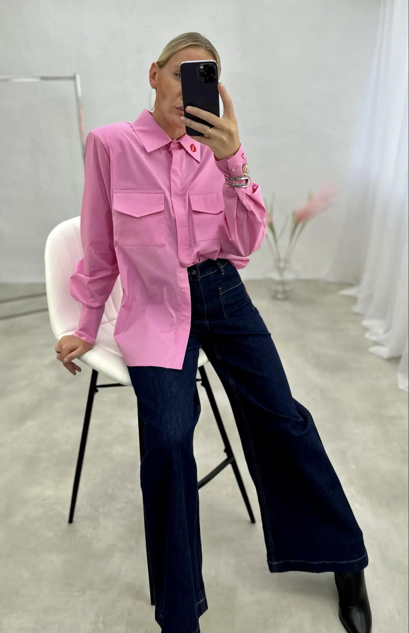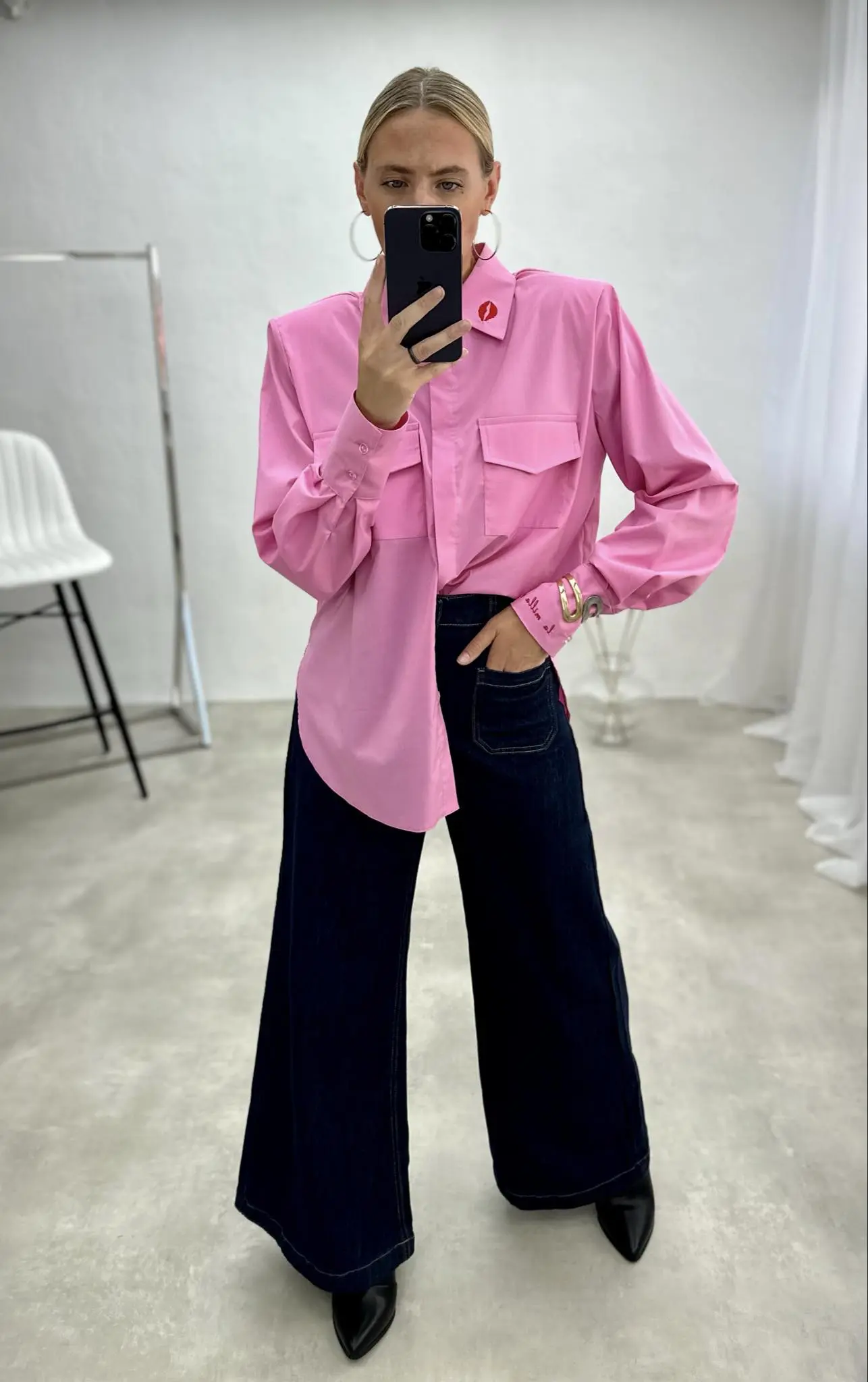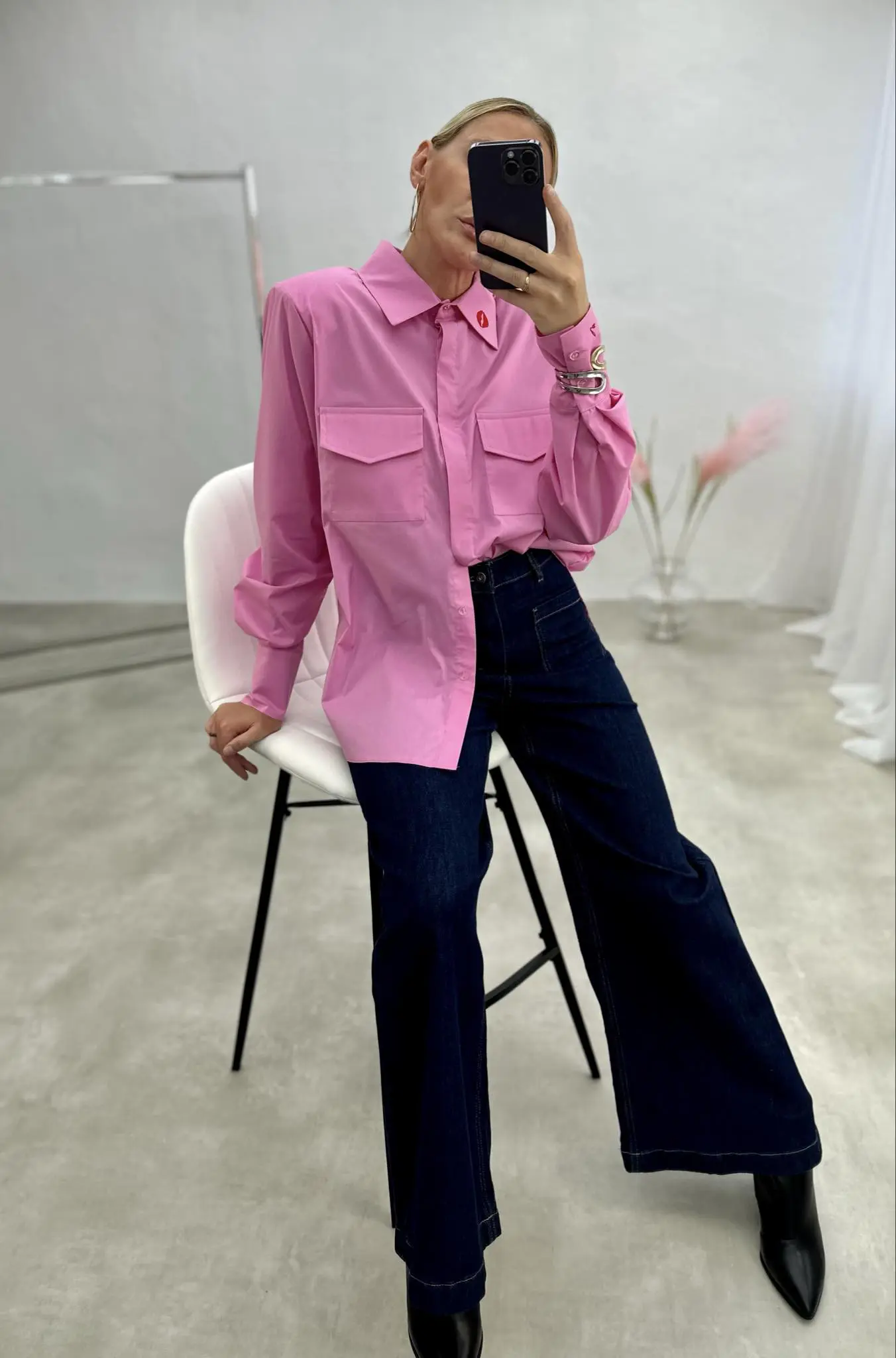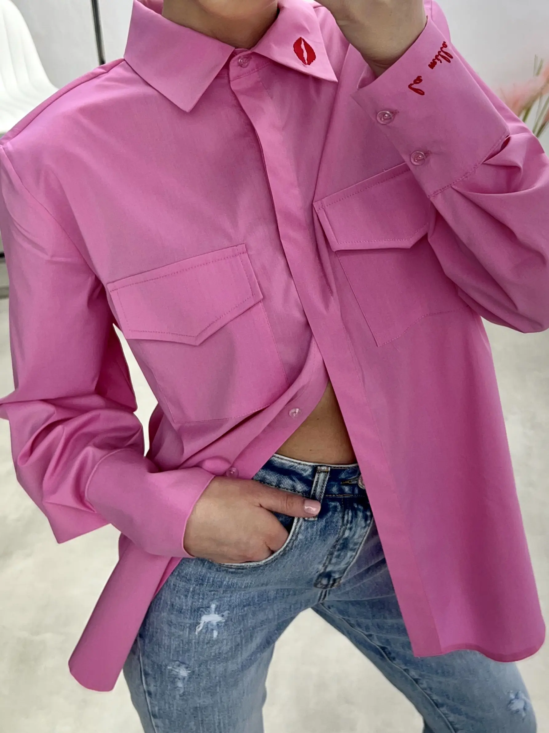 Stilingi lengvai prigludę marškiniai su išsiuvinėtais akcentais, kurie puikiai tinka tiek laisvalaikiui, tiek smart casual įvaizdžiui.