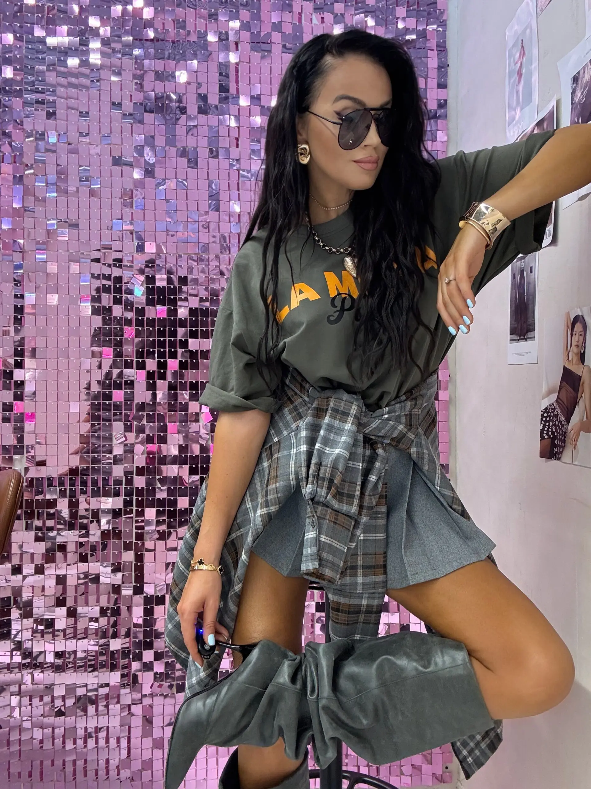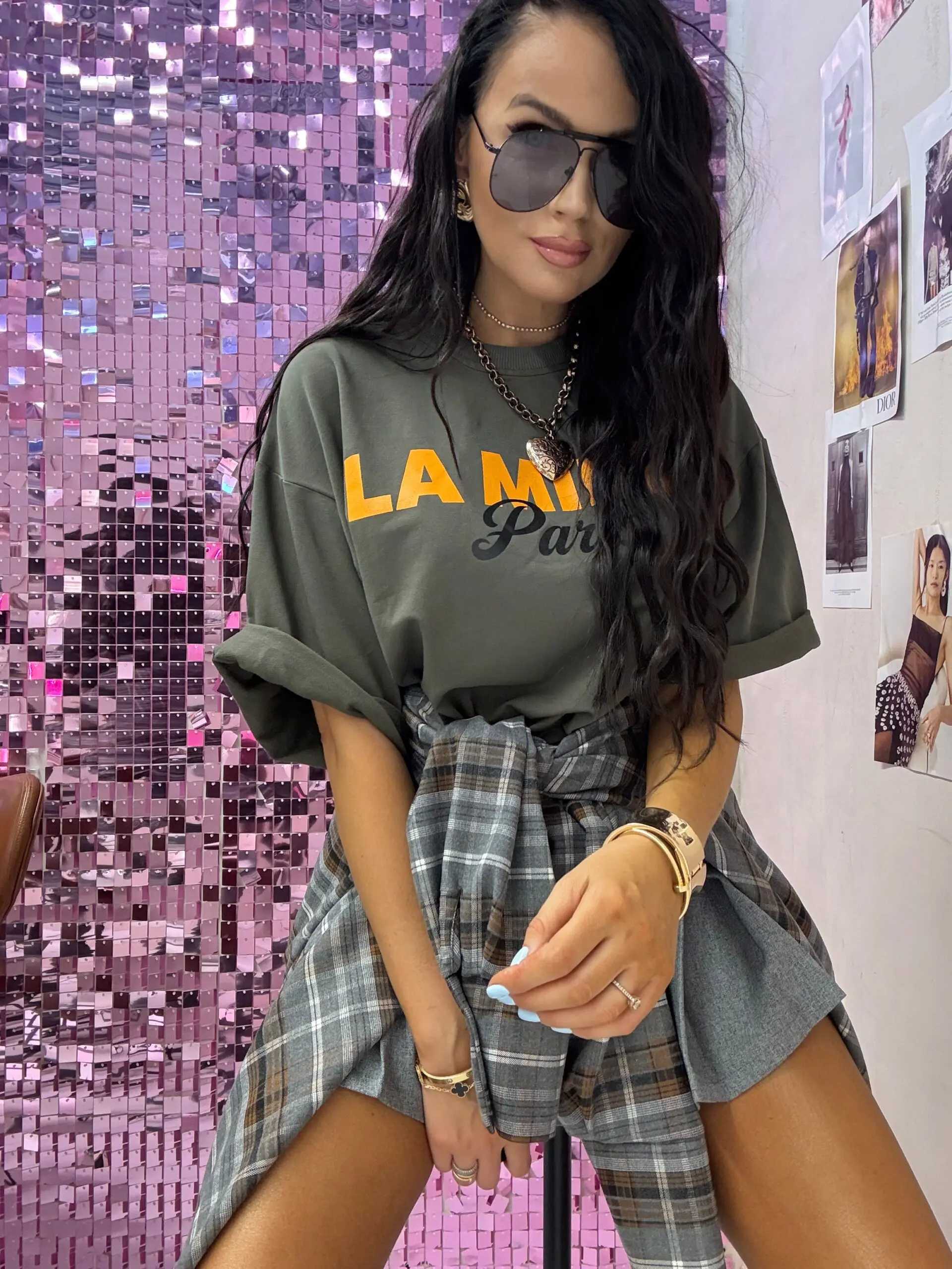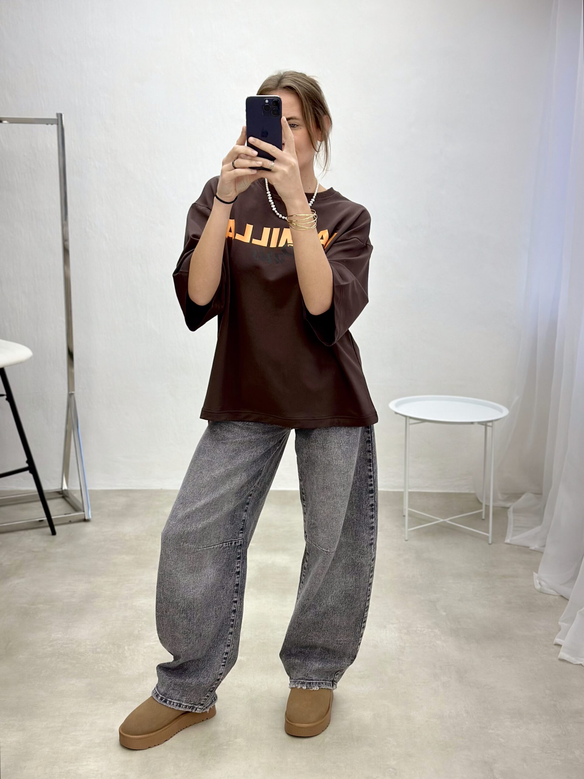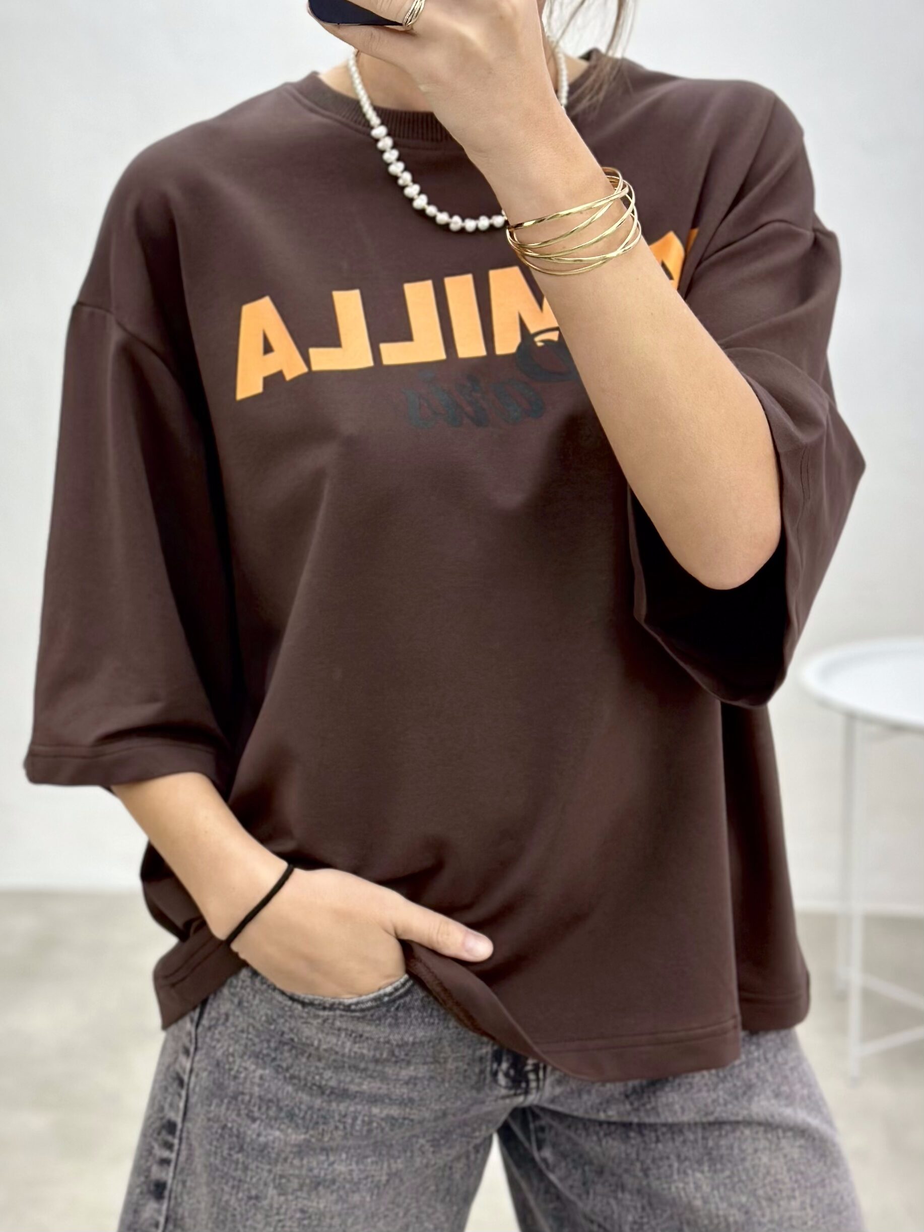 Stilingi oversize modelio marškinėliai su užrašu – modernus ir patogus pasirinkimas kasdienai. Laisvas kirpimas suteikia komforto, o minimalistinis dizainas lengvai derinamas prie įvairių įvaizdžių.