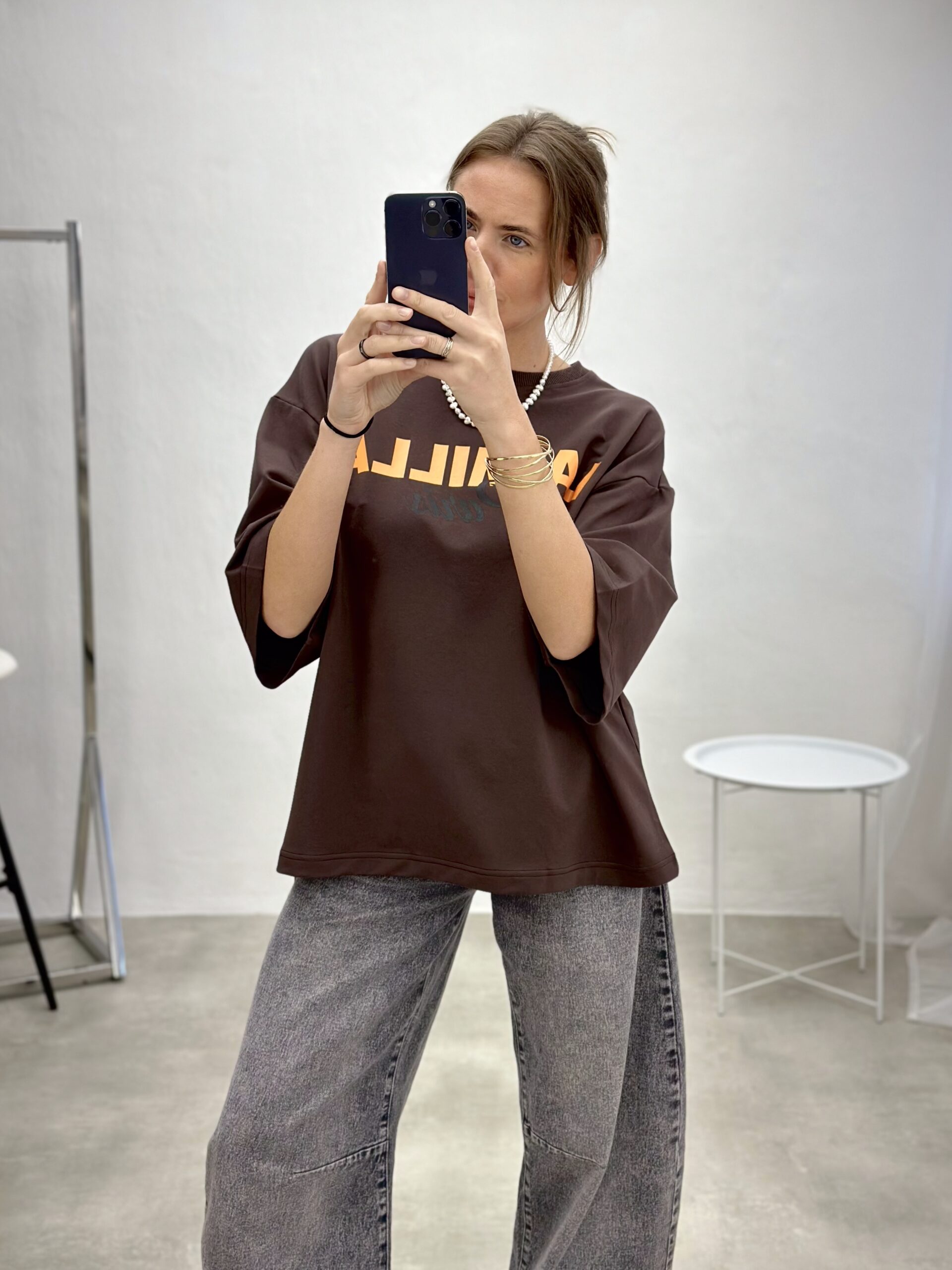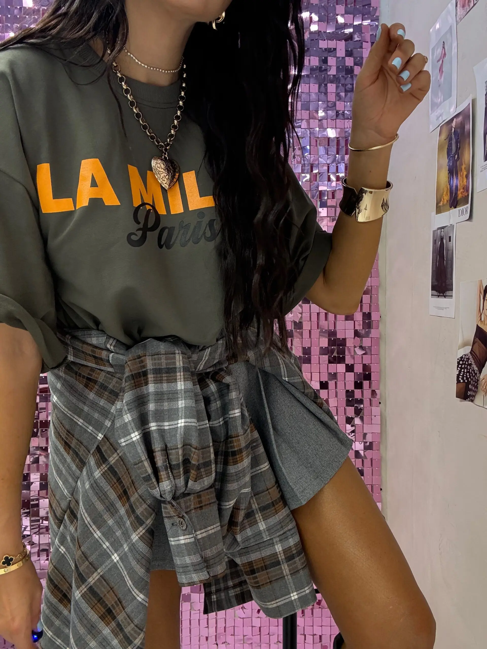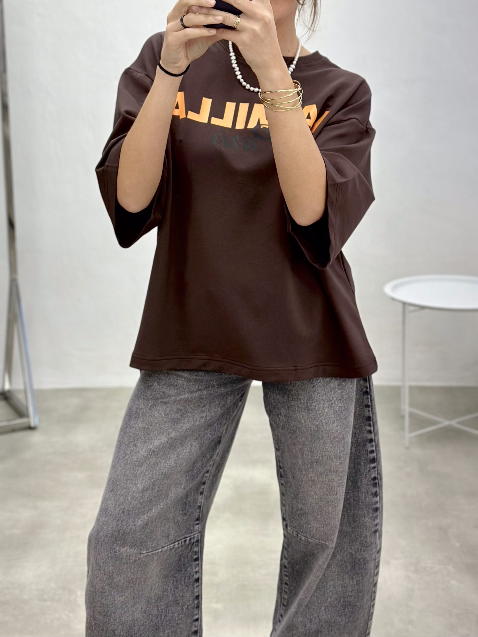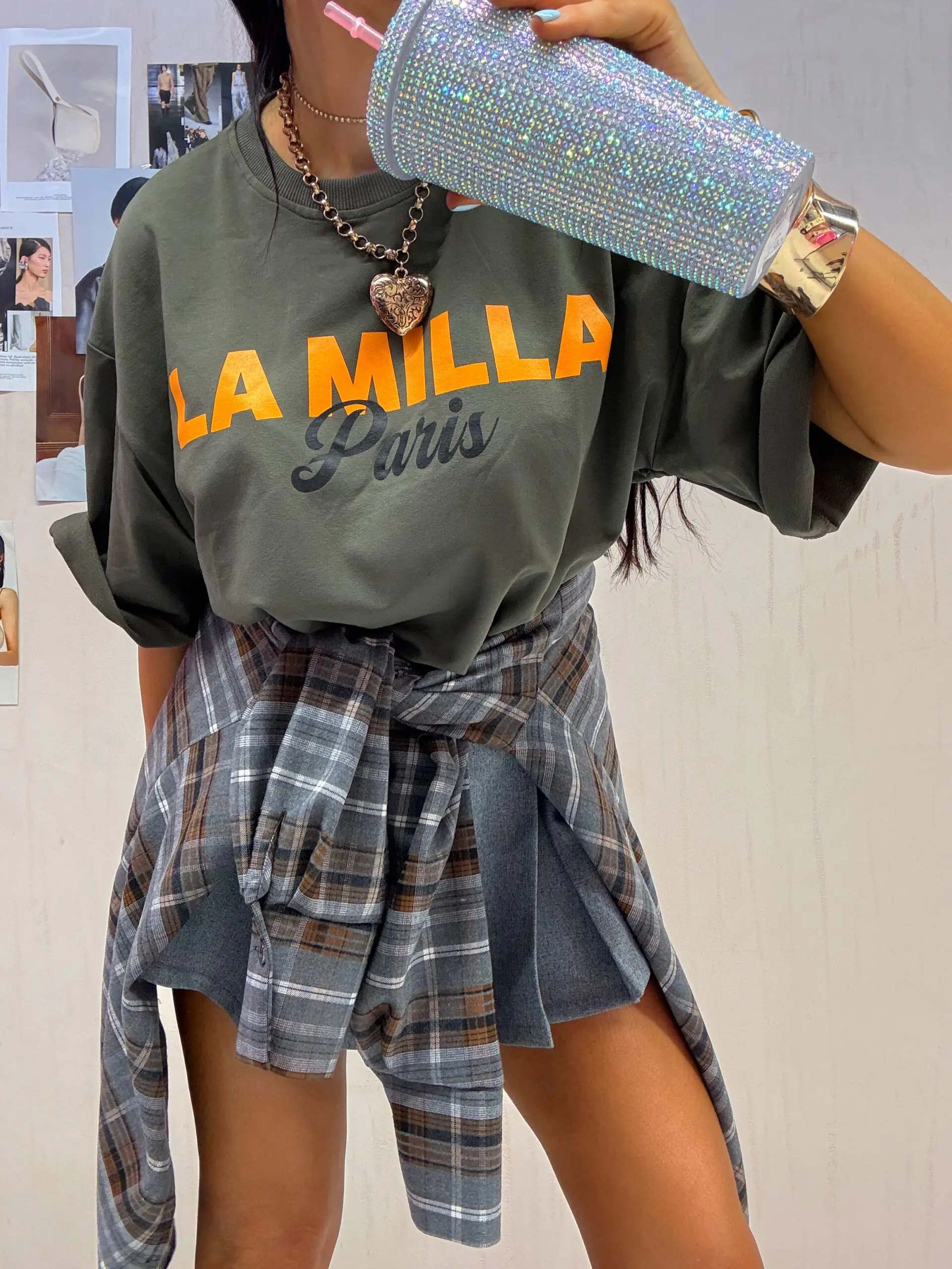 Stilingi oversize modelio marškinėliai su užrašu – modernus ir patogus pasirinkimas kasdienai. Laisvas kirpimas suteikia komforto, o minimalistinis dizainas lengvai derinamas prie įvairių įvaizdžių.