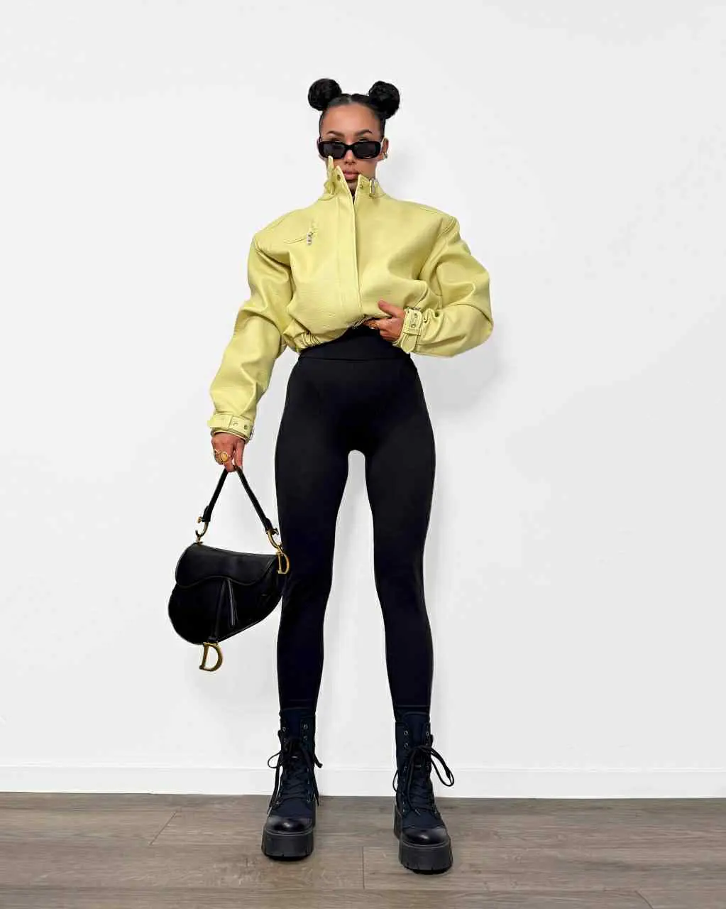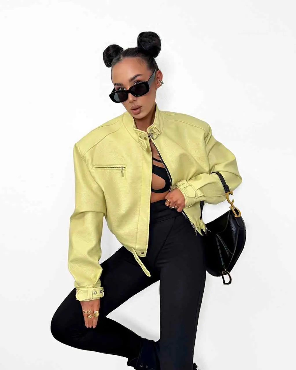 Trumpa dirbtinės odos striukė su užtrauktukais