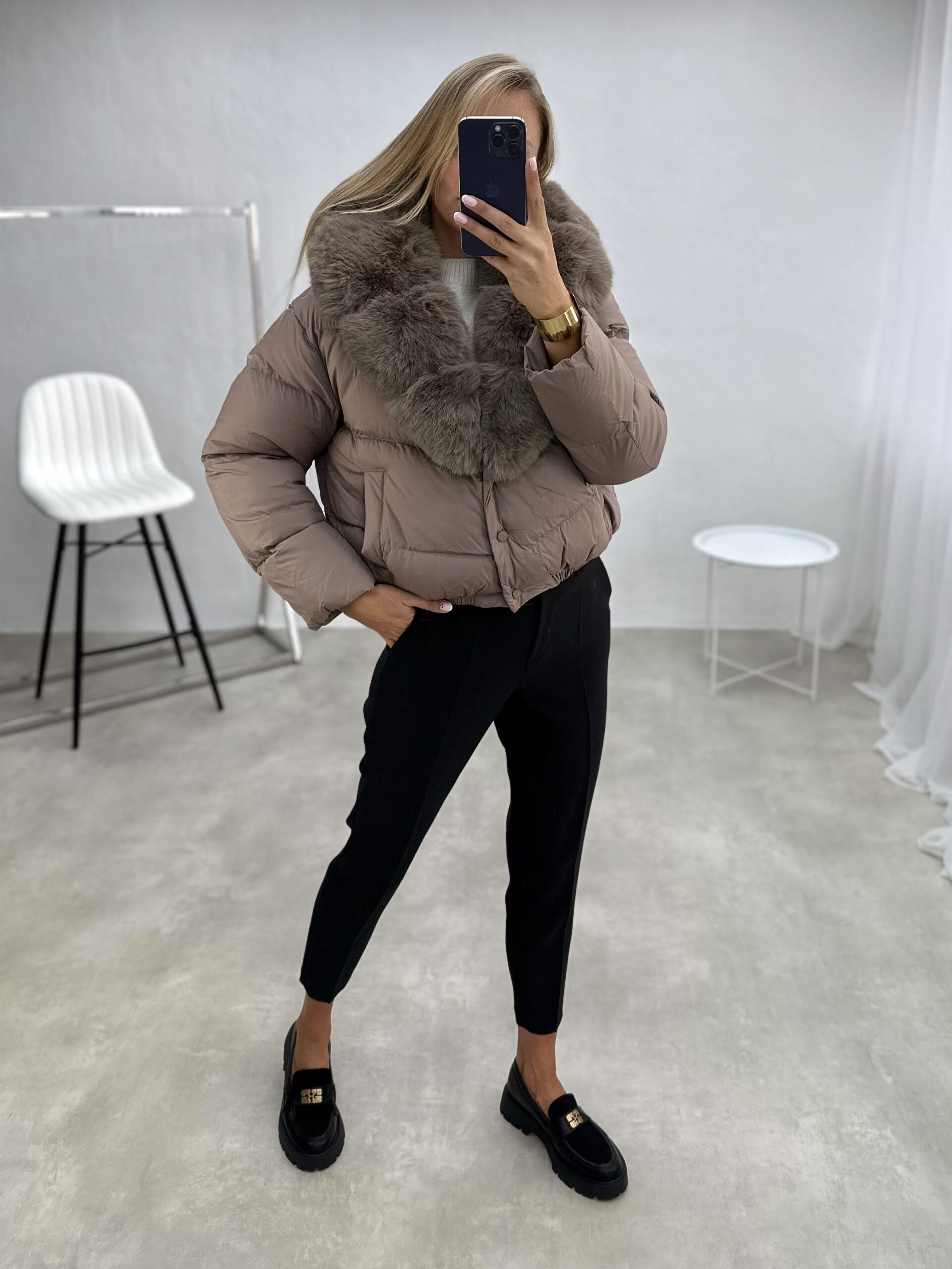Striukė su dirbtiniu kailiu