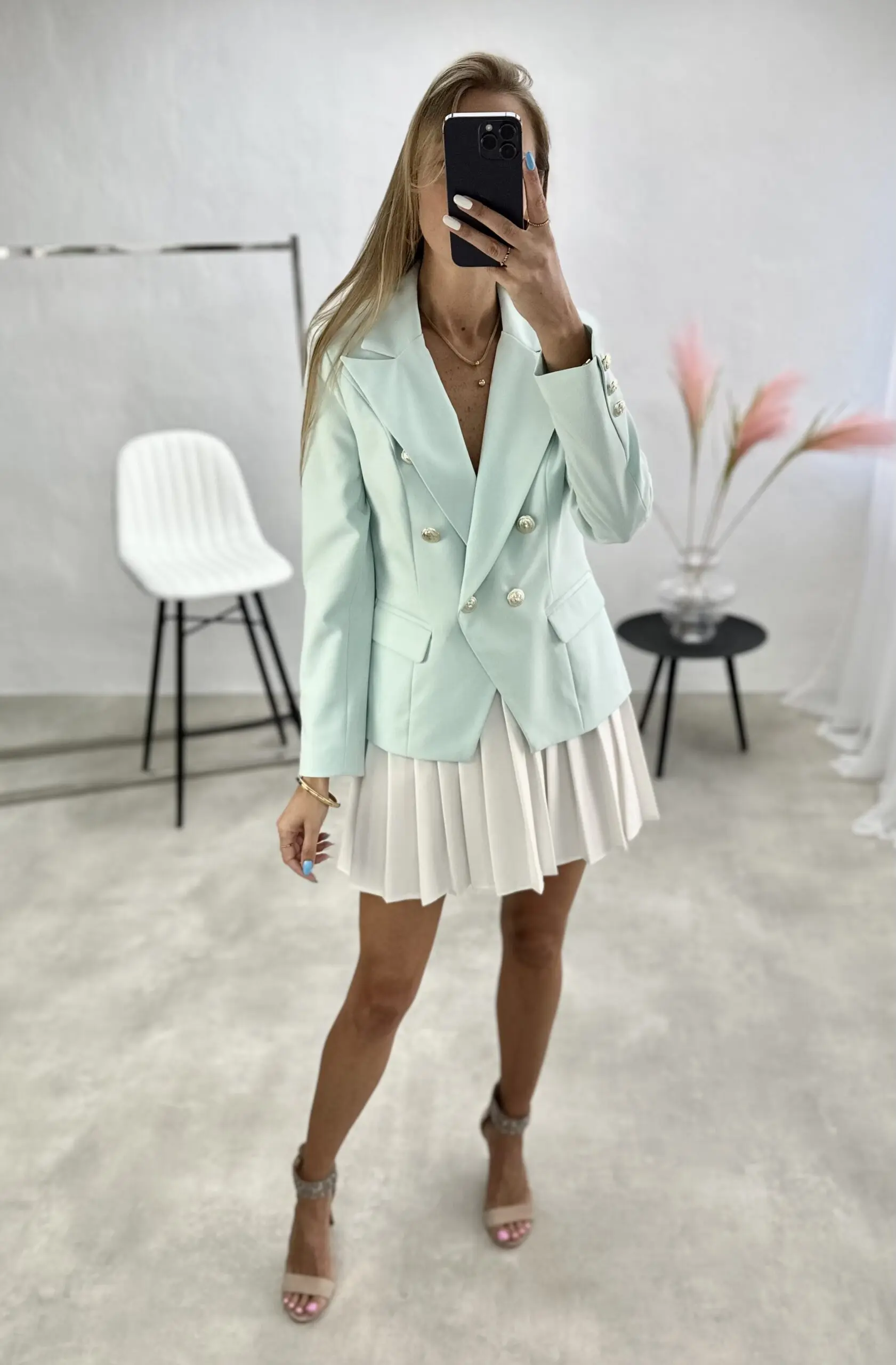 S dydis: krūtinės apimtis 87 cm, pečių juosta 37 cm, rankovės ilgis 60 cm, švarkelio ilgis 60,5 cm