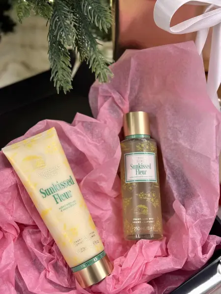 Victoria’s Secret rinkinys, kurį sudaro kūno losjonas ir kūno dulksna. Šviesus ir gaivus aromatas su saulėje subrendusių gėlių ir vaisių natomis, paliekantis odą švelniai kvepiančią ir glotnią.
